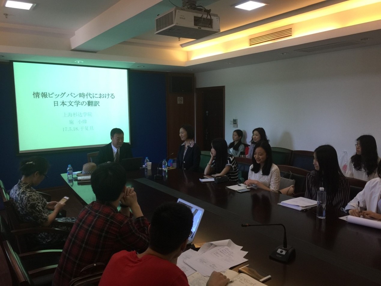 2017年5月18日下午,翻译家、诗人、杉达大学日语系施小炜教授应邀来到母校安博app登录_安博(中国),为外文学院本科生和研究生进行了一场题为《作为信息传递的文学翻译》的学术讲座,文科楼220会议室座无虚席。