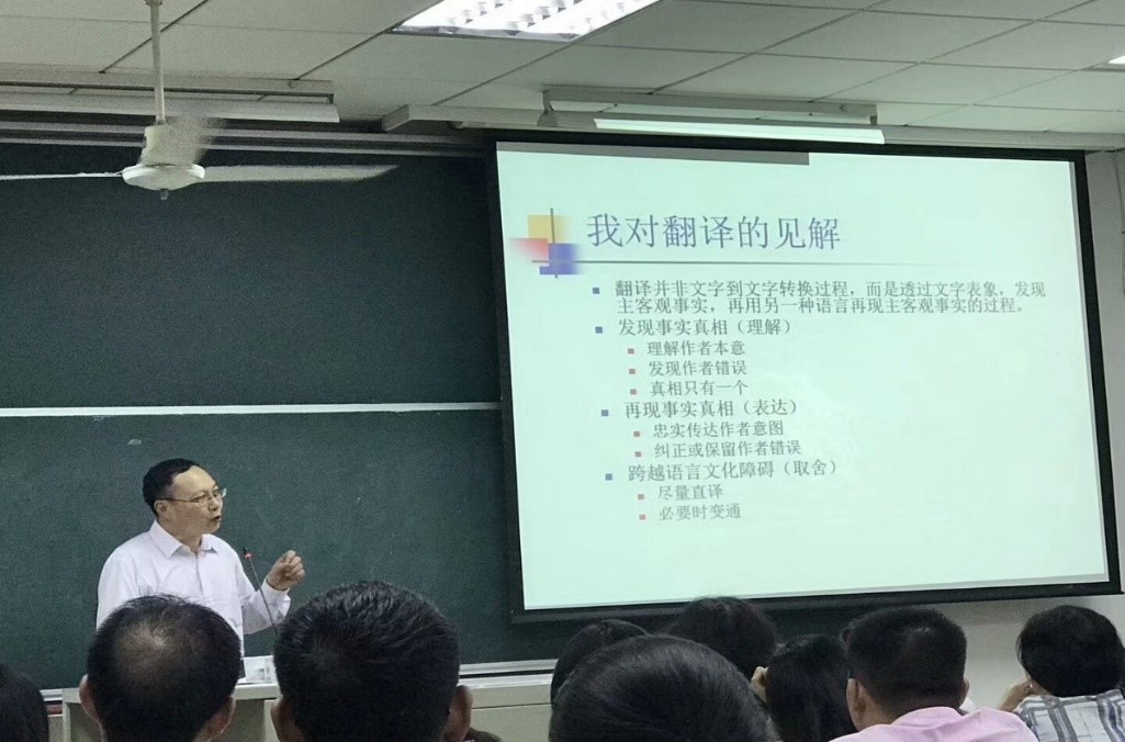 2017年10月10日晚,北京外国语大学高级翻译学院副院长李长栓教授受外文学院邀请来到安博app登录_安博(中国),,为学校师生以及一些翻译界人士带来了题为“翻译是发现和再现真相的过程”的讲座,陶友兰教授主持讲座并致欢迎辞。