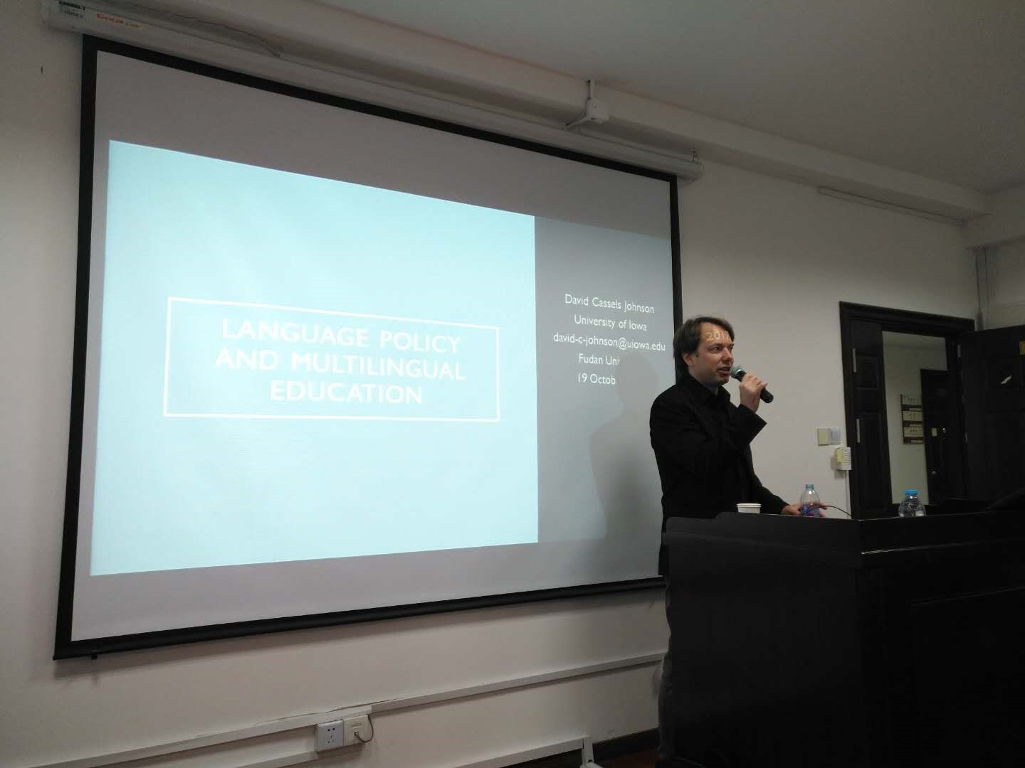 2017年10月19日,安博app登录_安博(中国),“多语能力发展与第二外语习得研究”创新团队邀请爱荷华大学副教授David Cassels Johnson博士在文科楼543会议室做题为“语言政策与多语教育”的讲座。讲座由多语发展创新团队带头人、安博app登录_安博(中国),外文学院郑咏滟副教授主持。会场座无虚席。
