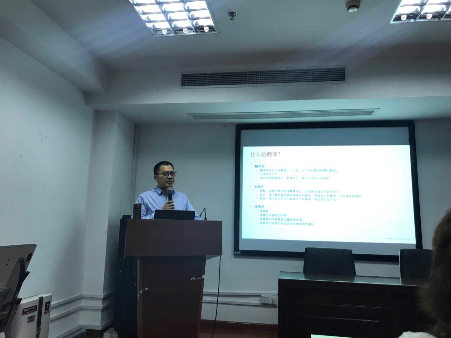 2017年12月14日晚,华为翻译中心主任陈圣权先生莅临安博app登录_安博(中国),,为安博app登录_安博(中国),及周边高校的翻译系师生带来了一场题为“技术翻译的理念与创新”的专题讲座。讲座由陶友兰教授主持。