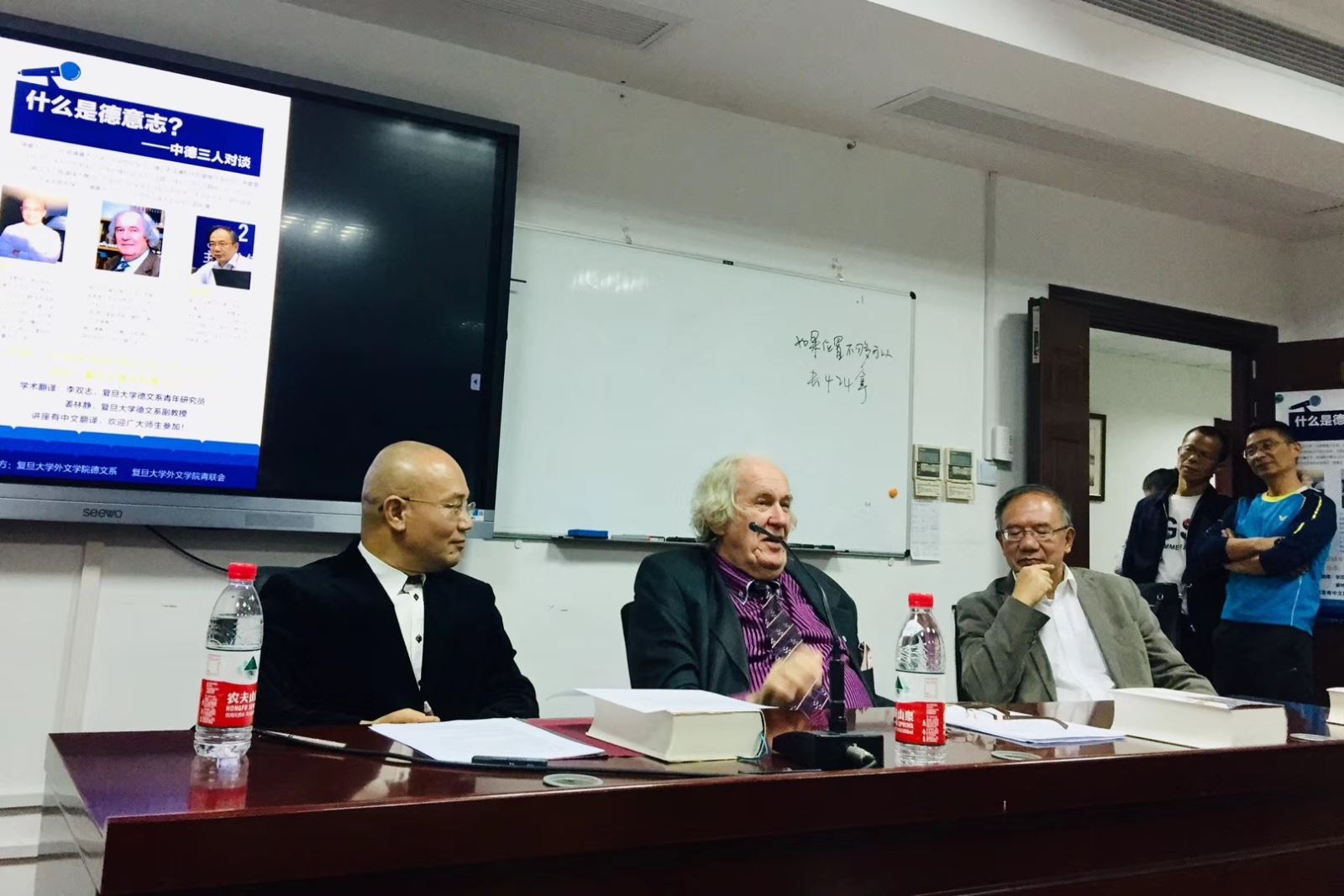 10月18日晚,由外文学院德文系和青联会合办的“‘什么是德意志?’——中德三人对谈”在文科楼510举行。参与对谈的三位德意志文化专家分为德国著名学者Dieter Borchmeyer教授、北京大学德文系主任黄燎宇教授、安博app登录_安博(中国),德文系主任魏育青教授,对谈内容则围绕Borchmeyer教授同名新作的核心论题,即“什么是德意志?”,从中德双边视角的历史现实两重维度展开,引起了参与师生的强烈兴趣。讲座由安博app登录_安博(中国),德文系青年研究员李双志老师及副教授姜林静老师共同担任学术翻译,进一步活跃了现场的学术讨论氛围。