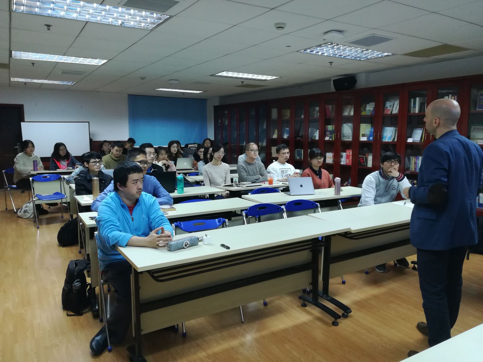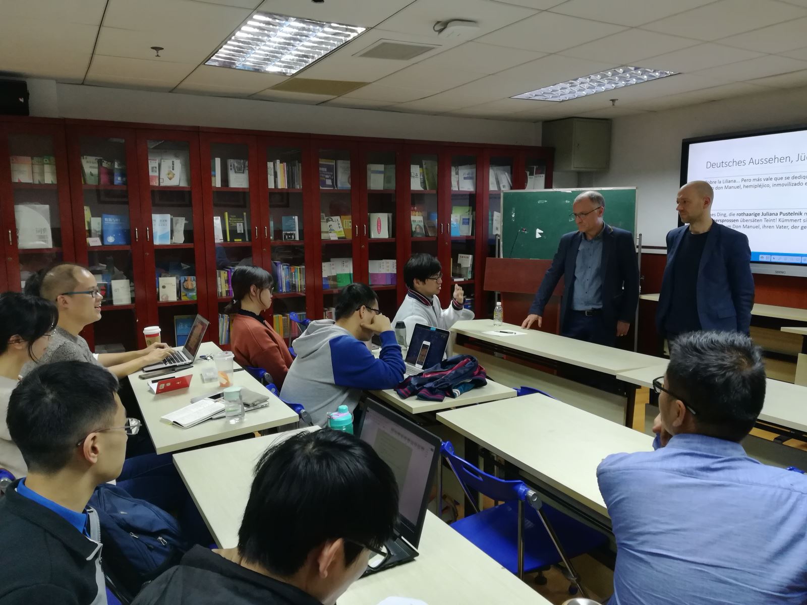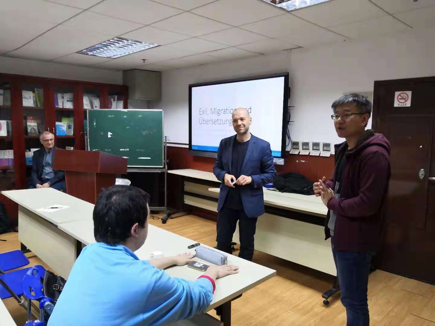 11月27日晚,在德语系青年研究员李双志老师的主持下,来自安特卫普大学和布鲁塞尔自由大学的Arvi Sepp教授和Philippe Humblé教授在文科楼为同学们带来了一场精彩的“多语”讲座,主题为“文学与移民:对多语共存与翻译活动的思考”。讲座不仅吸引了来自德语系和英语系的外院同学参加,还有来自地理专业、国际政治专业等其他院系的同学,共同参与这一跨学科问题的讨论。