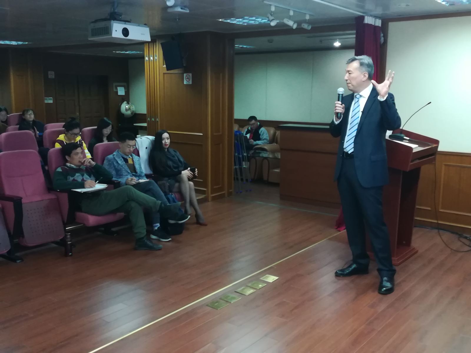 吴教授从风格学、修辞学、语言学,从篇章到句法详细地解读了《共产党宣言》。讲座结束后,吴教授和师生们进行了交流互动。