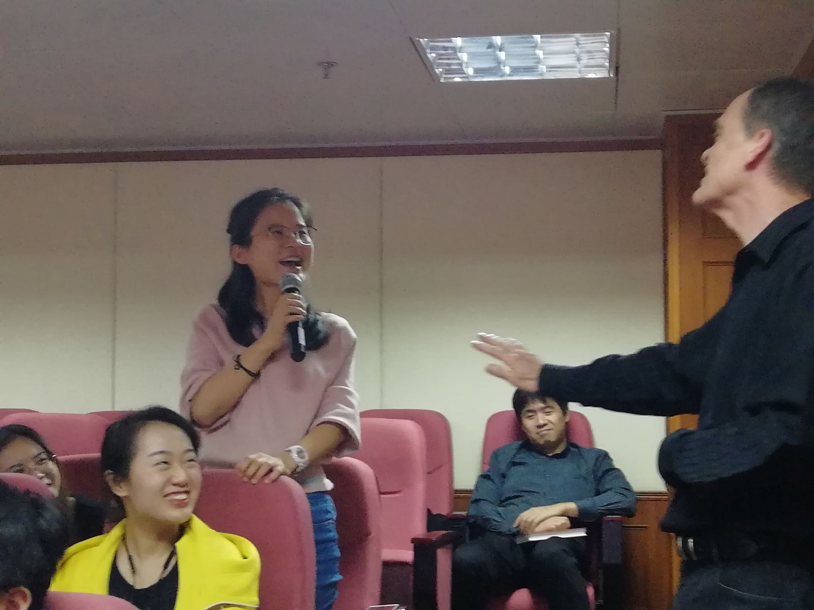 当今世界情势纷繁复杂,Ferguson先生认为,翻译水平的提高将会进一步加强中国在国际舞台上的话语权,增进外国人对中国的认同。短短四个小时,Ferguson先生与在座师生从英文写作和英语思维的层面分享了个人对目前汉英翻译、如何讲好中国故事,以及与翻译学习和翻译质量相关的原则看法。讲座逻辑清晰,阐释生动,内容详实。即便行程紧凑,Ferguson先生也特地预留出时间回答同学们的问题与疑惑,深入浅出,耐心细致。此次讲座使翻译专业的学生深受启发。