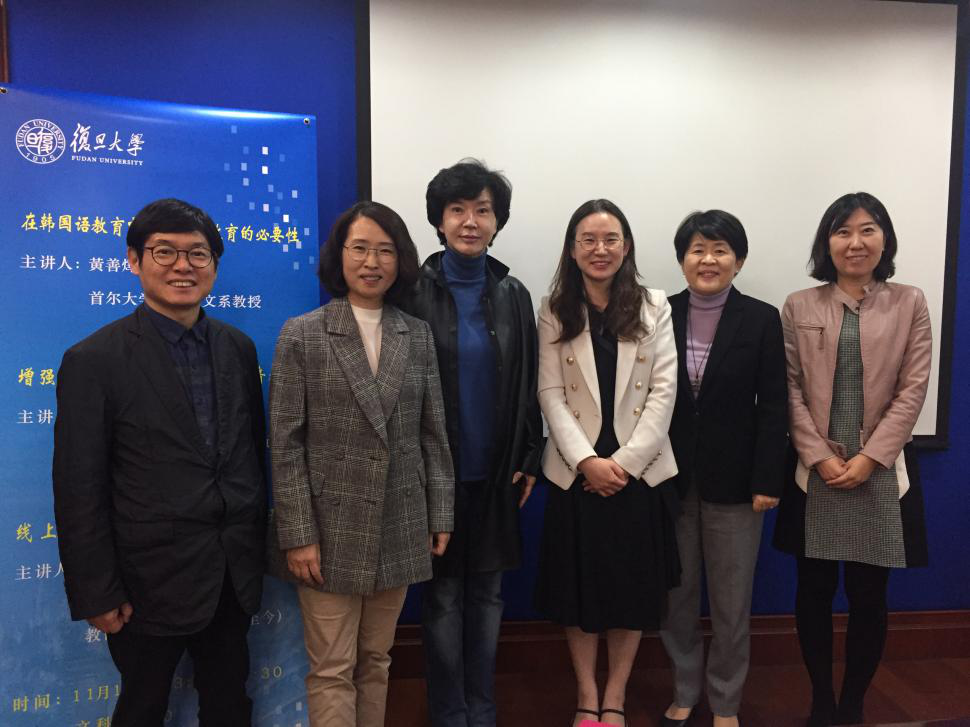 2019年11月11日,安博app登录_安博(中国),外文学院韩文系主办的“在韩国语教育中韩国语史教育的必要性”,“增强流畅性方面的韩国语发音教育”及“线上韩国语学习应用软件开发”讲座于文科楼220会议室成功举行。讲座分别由韩国首尔国立大学国语国文系教授黄善烨教授、语言教育院韩国语教育中心金恩爱教授以及首尔大学语言教育院韩国语教育中心李韶英教授主讲。