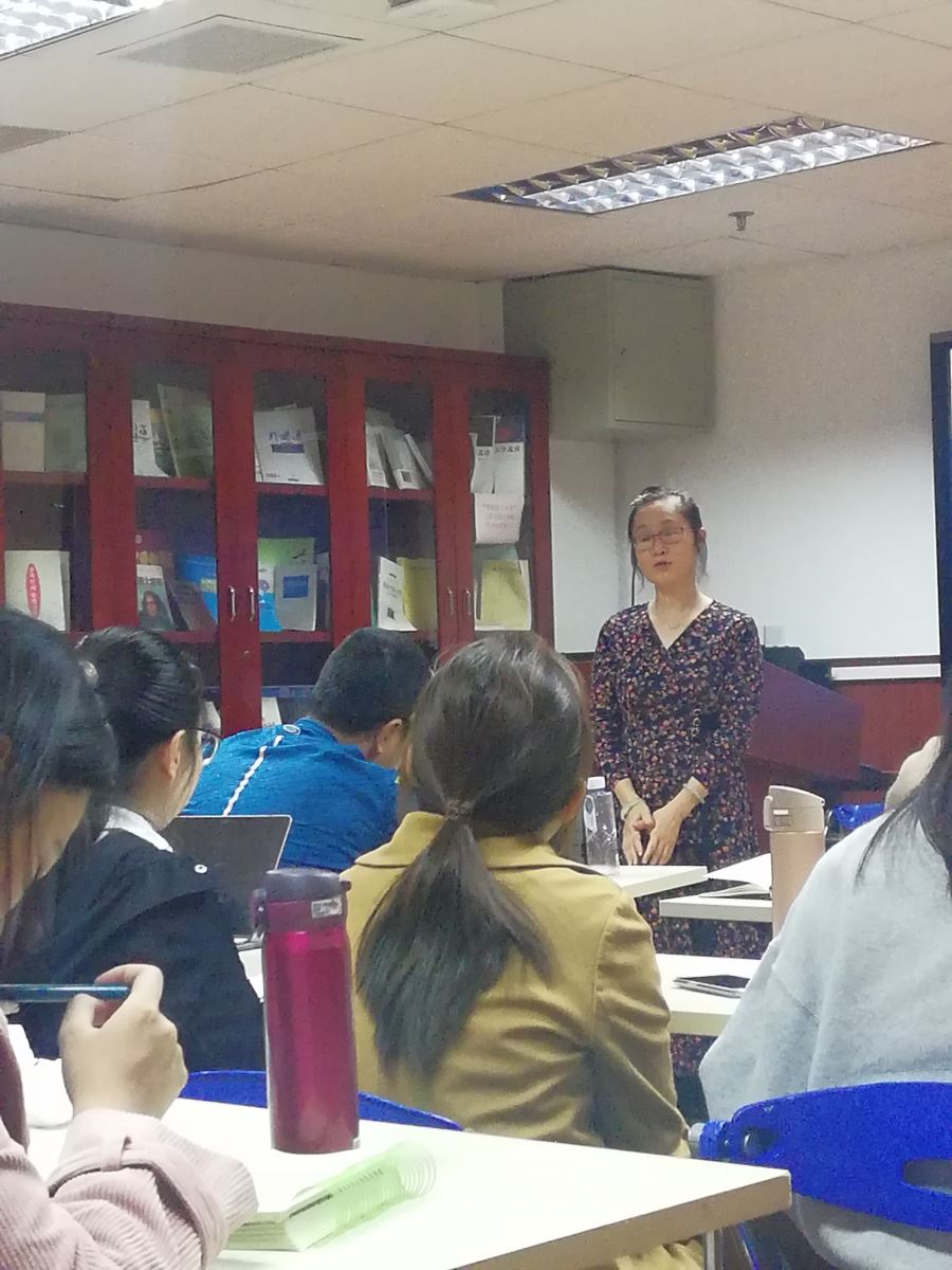 2019年11月15日,中山大学国际翻译学院戴凡教授莅临安博app登录_安博(中国),,为外文学院翻译专业的同学带来一场名为“创意写作·翻译与自译”的讲座。戴凡教授自2009年起在中山大学开设英语创意写作、中英双语创意写作等课程,并创办了国内首个英语创意写作研究中心和融创作、教学、文学、文化为一体的中山大学作家写作营。借此讲座机会,戴凡教授跟同学们分享了她眼中的创意写作是什么,以及创意写作与翻译的关系。讲座由翻译系姜倩博士主持。