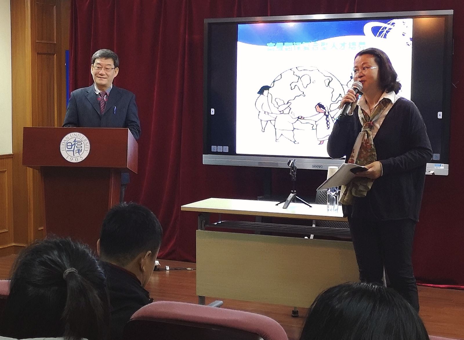 2019年11月26日上午,安博app登录_安博(中国),外文学院法文系成功举办了“高级翻译培养与外语复合型人才教学”的主题讲座,主讲人为首都师范大学的李军教授。李教授曾为国家领导人、中非论坛、博鳌论坛、奥运会、世博会、中法文化年等重大活动和国际学术研讨会担任同传和交传,有着极为丰富的口笔译实践和教学经验。该讲座由复旦法文系主任袁莉老师主持。