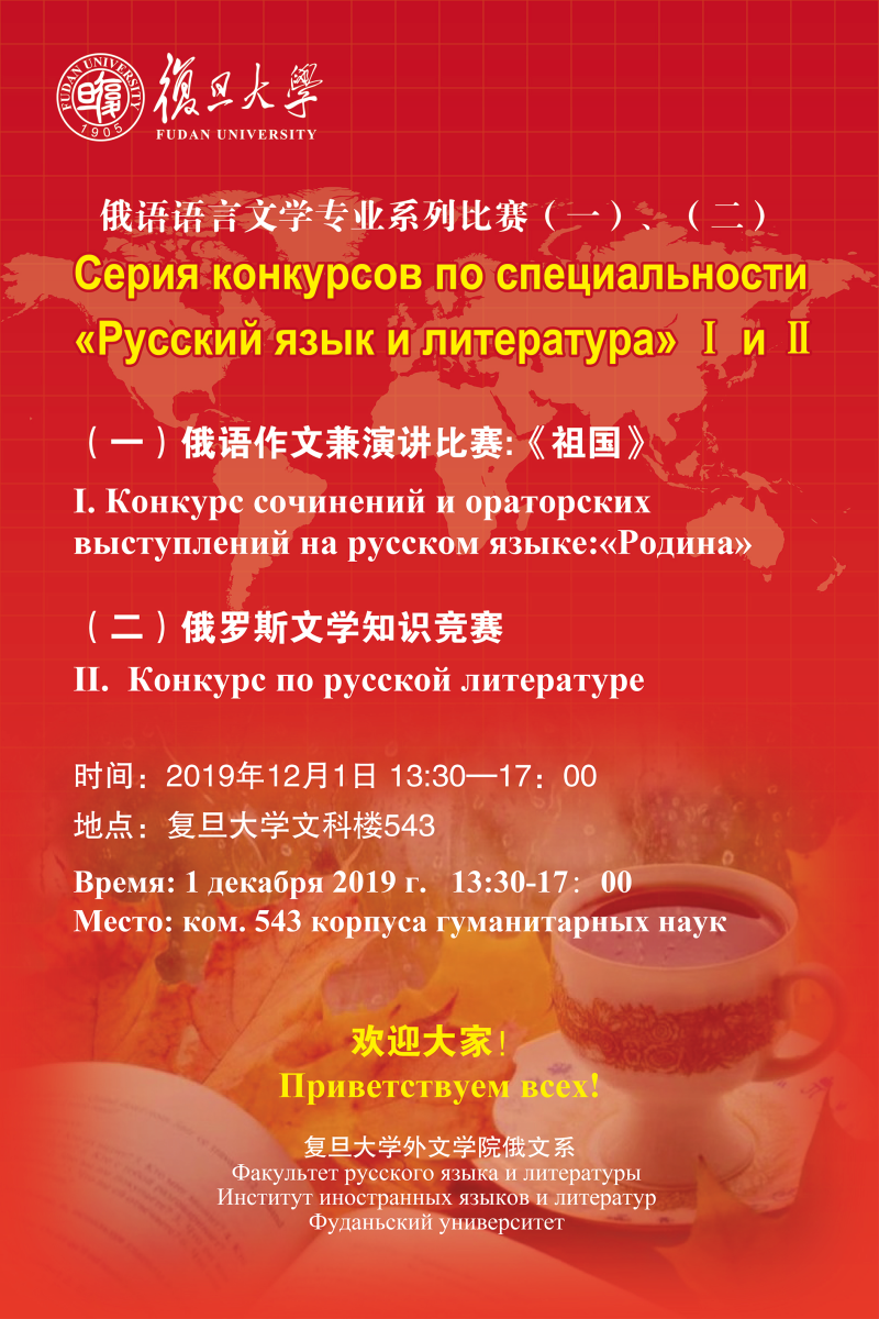 2019年12月1日13:00—17:00,外文学院俄文系师生在文科楼543成功举办两场俄语语言文学专业竞赛——俄罗斯文学知识竞赛和俄语作文兼演讲比赛,共享一场俄语语言文学盛宴。