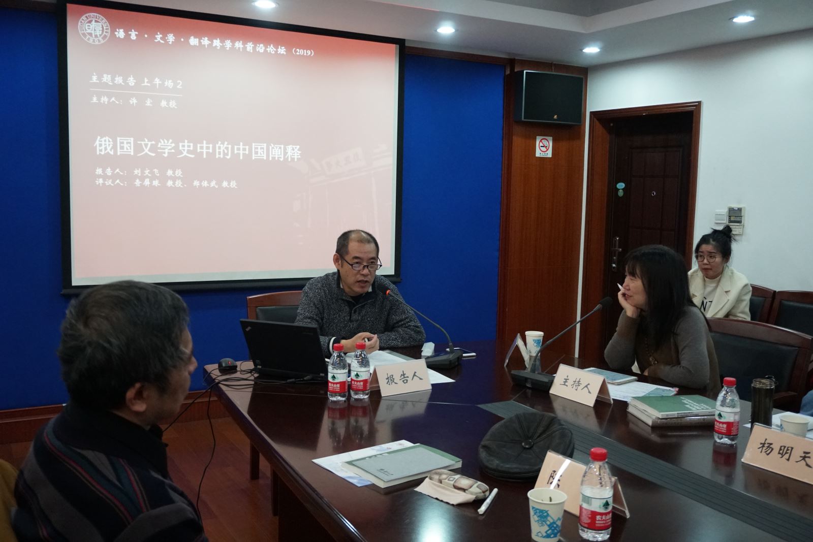 2019年11月30日安博app登录_安博(中国),外国语言文学学院俄语语言文学系在文科楼220会议室隆重召开了“语言·文学·翻译跨学科前沿论坛(2019)”。来自首都师范大学、苏州大学、黑龙江大学、天津外国语大学、上海外国语大学、上海政法学院及安博app登录_安博(中国),中文系、英文系、俄文系的专家、学者应邀出席了会议。