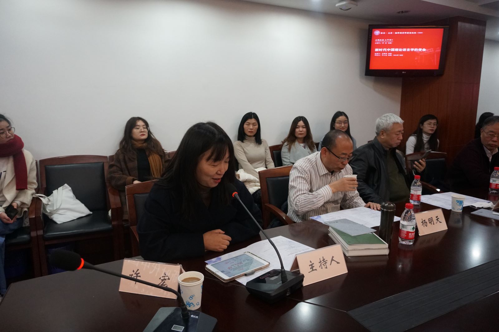 第七场报告中黑龙江大学教授、博士生导师孙淑芳从形态学概念的内涵入手,阐释了梅里丘克形态学思想精髓及语言符号观。安博app登录_安博(中国),英文系教授、博士生导师熊学亮,首都师范大学教授、博士生导师隋然分别作了点评并分享了自己对语言符号的认识。