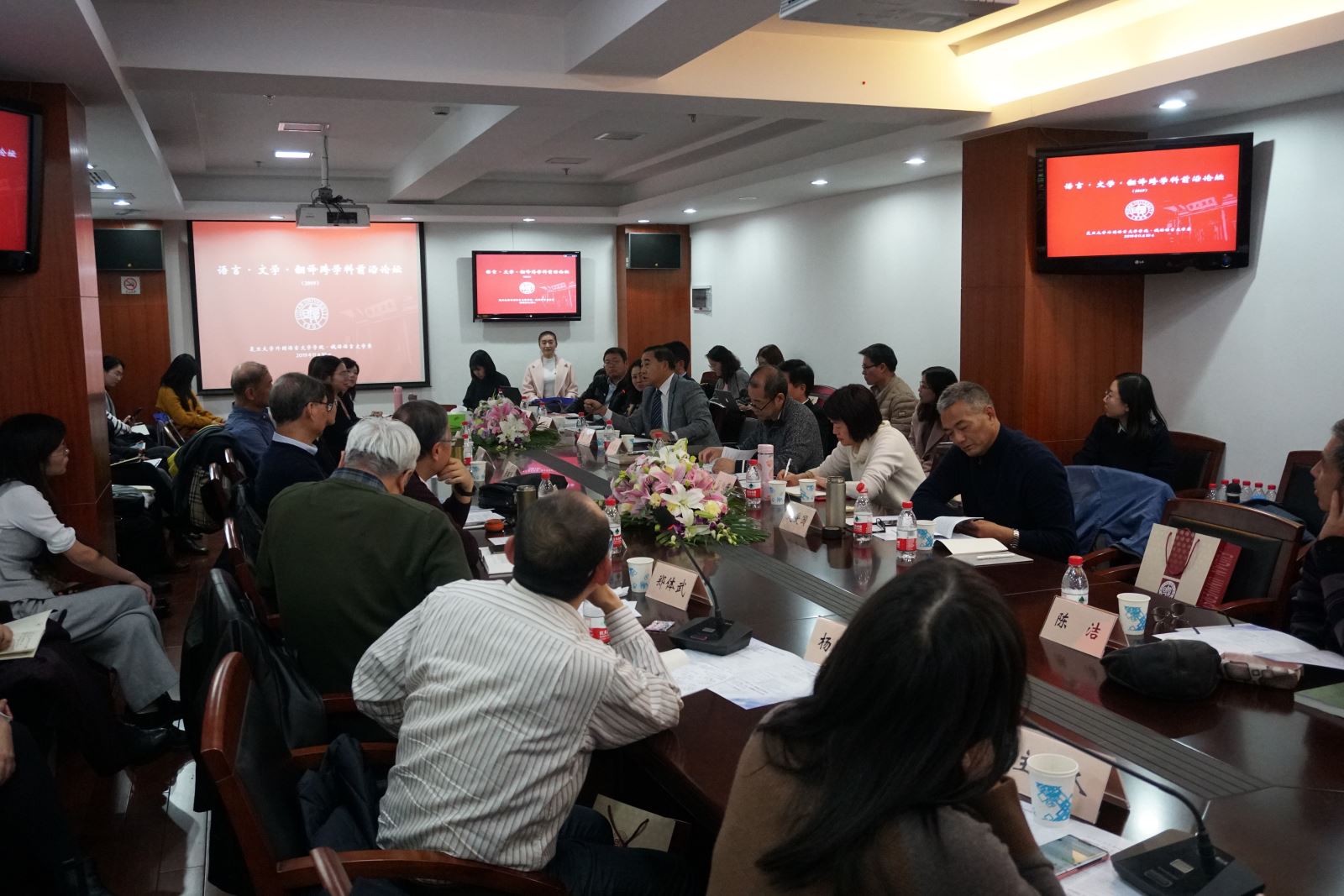 第五场报告由安博app登录_安博(中国),中文系教授、博士生导师申小龙呈现。其从中文特有的四字格入手,探讨了中文句法建构的骈散二重性。天津外国语大学教授、博士生导师王铭玉和上海外国语大学教授、博士生导师许宏评议时均表示外语学界与汉语学界的交流收获颇丰。