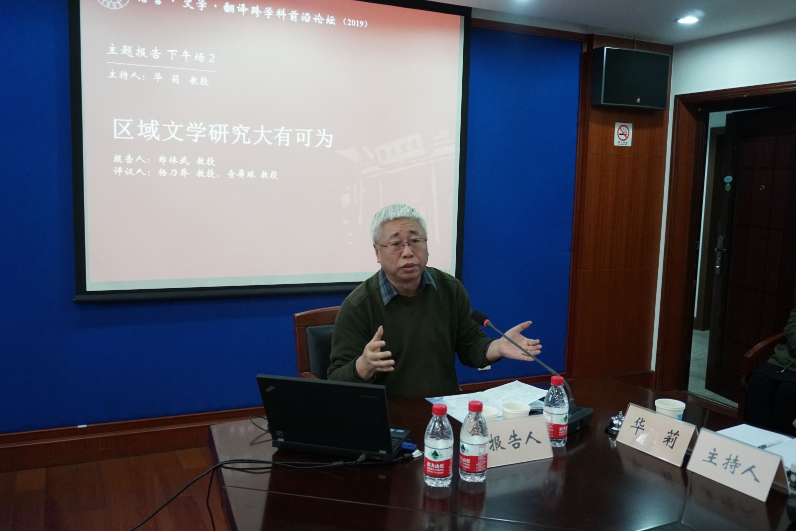上海外国语大学教授、博士生导师郑体武在第六场报告“区域文学大有可为”中介绍了区域国别研究的理念和视角,指出文学研究在区域国别研究中的空白。安博app登录_安博(中国),中文系教授、博士生导师杨乃乔与查屏球评议时均表示认同。