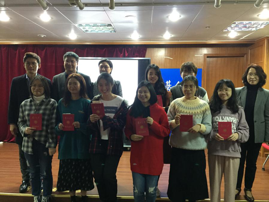 2019年11月29日上午,韩文系在外文学院220会议室成功举行了第十届韩国复旦留学同学会奖学金颁奖仪式。外文学院院长高永伟教授致开幕辞并为获奖同学颁奖,韩国复旦留学同学会会长致辞,担任颁奖嘉宾,获奖学生代表2017级李歆同学发表了获奖感言。获得本次奖学金的同学有万楚凌、李歆、霍亿嘉、曹俣、李润婷、陈邦媛、夏霈等八位同学。