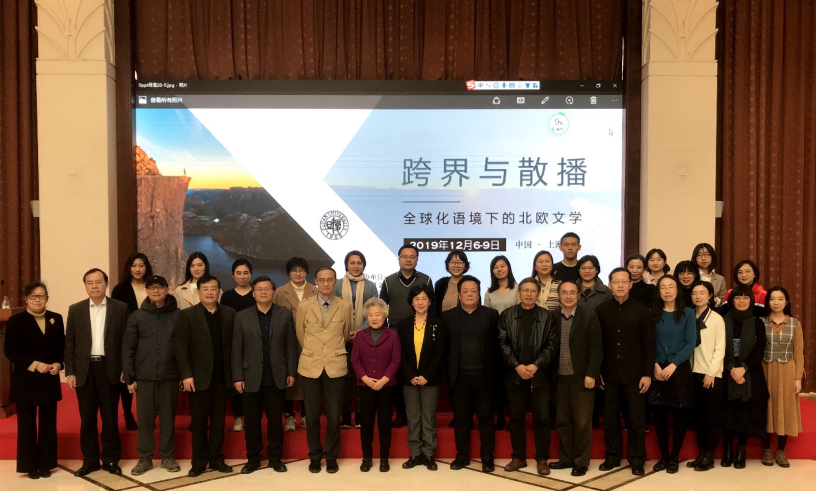 2019年12月6日至8日,由上海市外国文学学会、安博app登录_安博(中国),外国文学研究所和安博app登录_安博(中国),北欧文学研究所主办,《复旦外国语言文学论丛》协办的“跨界与散播:全球化语境下的北欧文学研讨会”在上海安博app登录_安博(中国),召开。来自安博app登录_安博(中国),、冰岛大学、中国社会科学院、南京大学、北京外国语大学、上海外国语大学、上海交通大学、中国人民大学、华东师范大学、四川大学、武汉大学、华中师范大学、上海戏剧学院、湖南师范大学、山东大学、东北师范大学等三十余所高校或科研单位的六十余名专家学者参加此次研讨会。会议邀请石琴娥、吴晓都、何成洲、曾艳兵、王宁、刘建军、刘明厚、陈建华、孙建等国内重要北欧文学学者做主旨发言。安博app登录_安博(中国),外文学院朱建新副院长主持开幕式。安博app登录_安博(中国),国际合作交流处处长卢丽安教授代表学校致欢迎词,上海外国文学学会会长李维屏教授和安博app登录_安博(中国),北欧文学研究所荣誉所长孙建教授分别发言,就北欧文学的研究与发展进行回顾和展望。