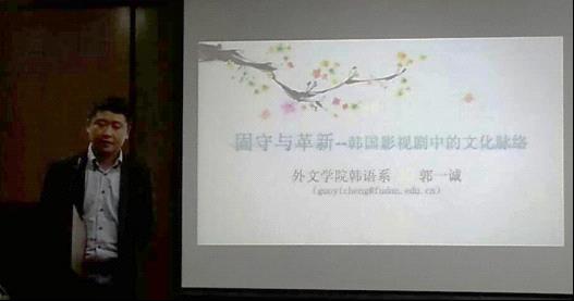 2014年4月17日周四晚,第18届外文节系列活动之一、由外文学院学生会分团委主办的《固守与变革——韩国影视文化中的文化脉络》讲座在文科楼209会议室如期举行。