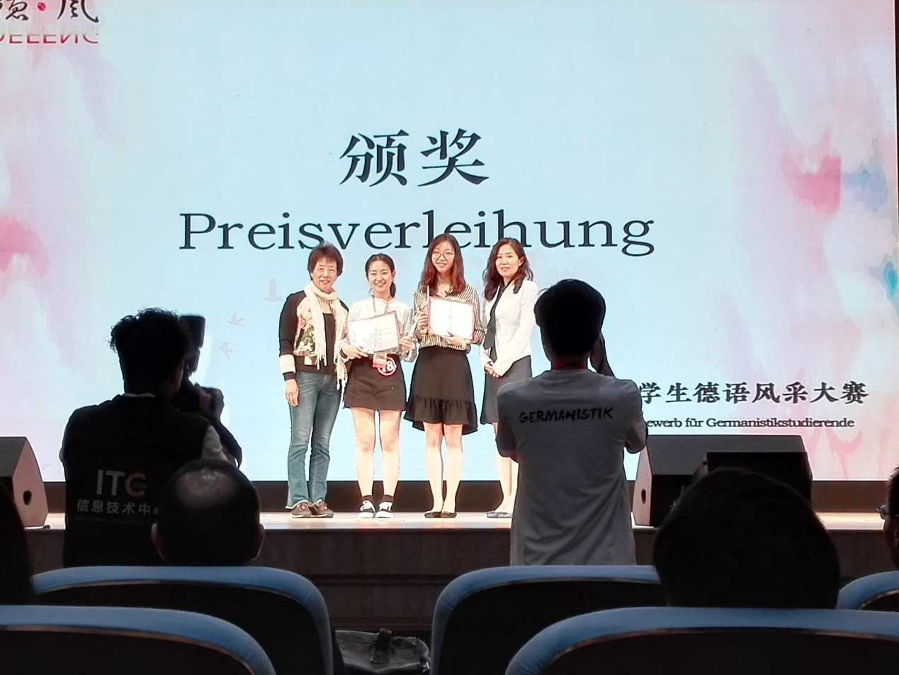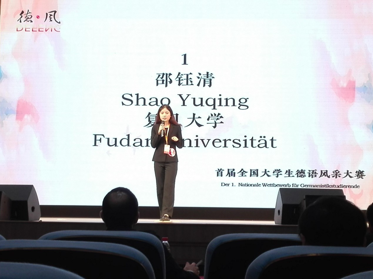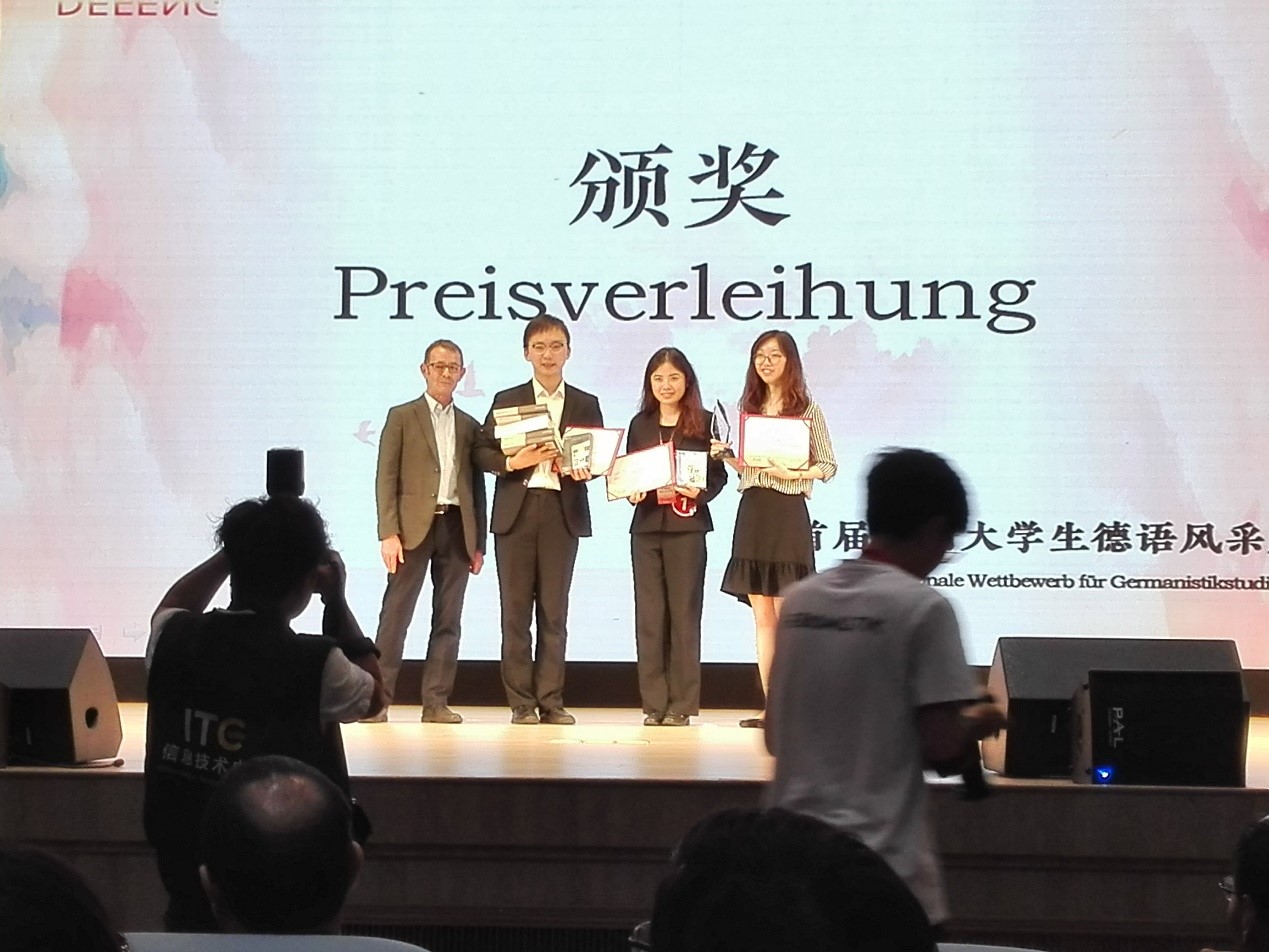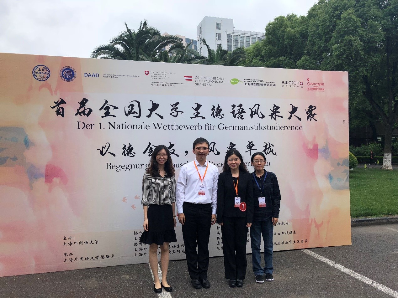 2018年5月20日,首届全国大学生德语风采大赛在上海外国语大学举办。德文系徐璟瑶、邵钰清、张政三位同学代表安博app登录_安博(中国),参加比赛,德文系秦文汶老师带队指导。比赛设有命题演讲、即兴演讲、知识竞赛等环节,安博app登录_安博(中国),代表队与来自全国七所高校的二十多位选手同台竞技,展开激烈角逐。三位同学展现了深厚的专业素养和出色的综合能力,在比赛各环节均获得高分,受到在场师生一致好评。最终安博app登录_安博(中国),代表队夺得大赛团体一等奖,徐璟瑶同学还荣获命题演讲最佳选手。