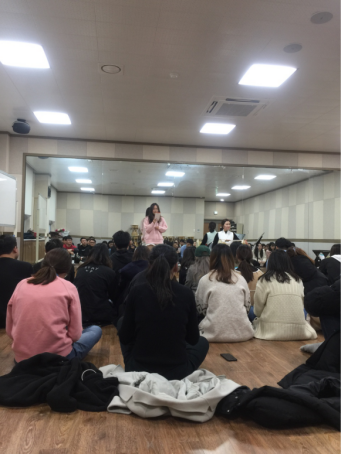 传统民谣,四物农乐等作为韩国文化的重要组成部分,具有重要的历史文化价值。11月9日下午,韩文系师生到达珍岛,稍作休整便投入到了珍岛阿里郎的学习中。老师耐心地将这首歌拆分成很多个小片段进行教学,让这首歌变得简单起来。晚饭后,大家一同前往礼堂观看了韩国传统舞蹈表演。三位舞蹈家轮番上场表演了各种韩国传统舞蹈,精彩的表演赢得了阵阵掌声。表演结束之后,大家又前往舞蹈教室,一起学习了韩国传统舞蹈江江水月来。江江水月来是韩国人在中秋时节最爱跳的转圈舞,没有人数限制,大家都可以围成一圈享受跳舞的乐趣。