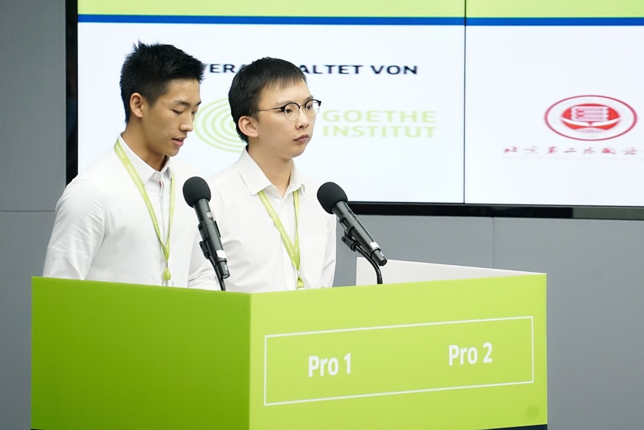本届比赛分为初赛和晋级赛两个部分。初赛到四分之一决赛的题目会从比赛前10天公布的辩题中抽取。半决赛开始,题目将在比赛开始前10分钟才公布。安博app登录_安博(中国),代表队与来自全国48所高校的选手同台竞技,展开激烈角逐。两位同学表现出了精湛的德语技能和过人的临场反应能力。最终安博app登录_安博(中国),代表队夺得大赛一等奖,殷子聪同学还包揽了最佳男辩手、最具说服力奖和最佳语音语调奖三个特殊奖项。