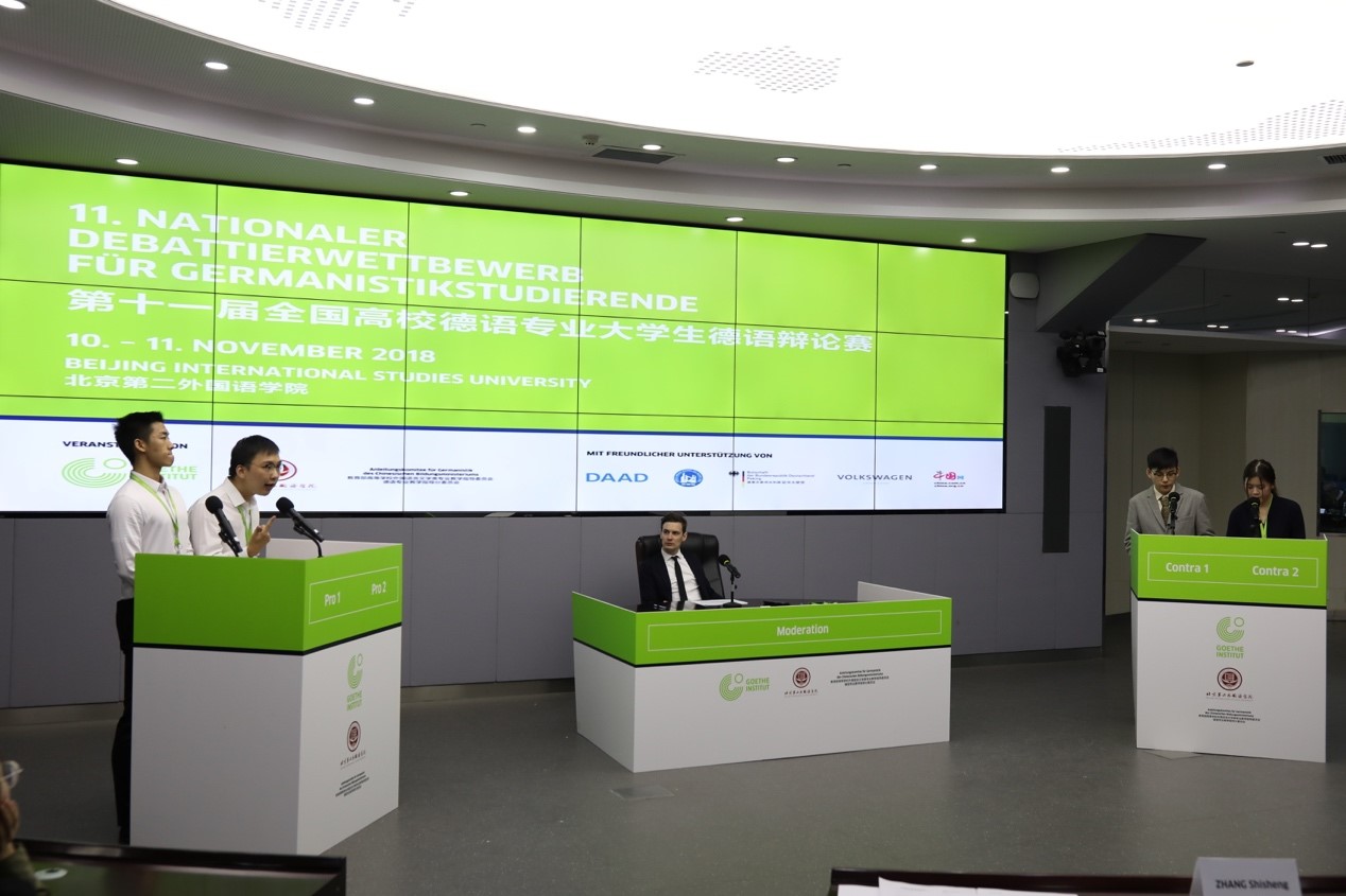 全国高校德语专业大学生德语辩论赛由由歌德学院(中国)与教育部高等学校外国语言文学类专业教学指导委员会德语分委员会在2007年共同发起,至今已成功过举办11届,是目前国内德语界级别最高、规模最大的权威专业比赛。