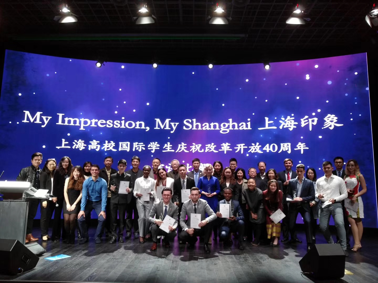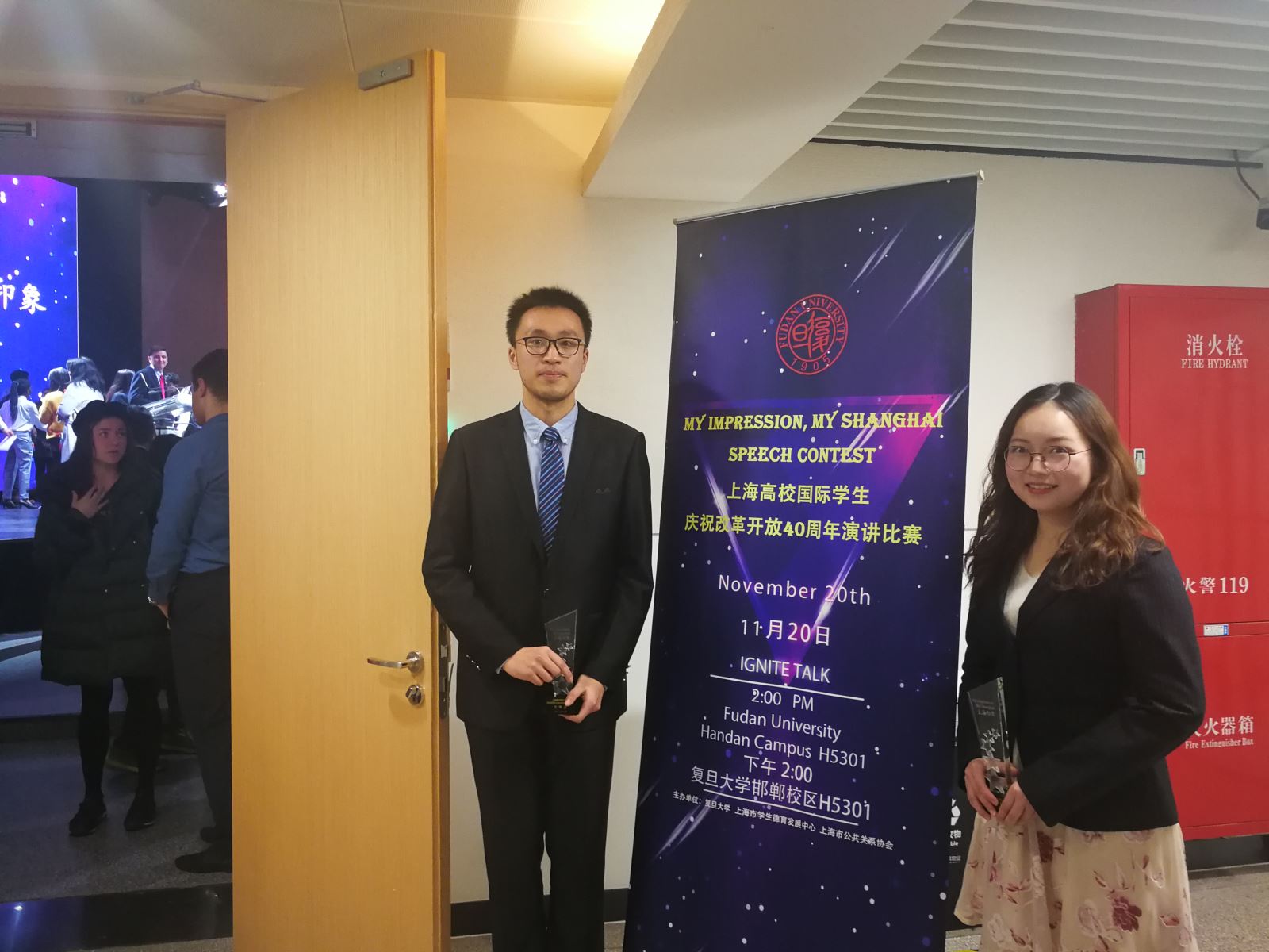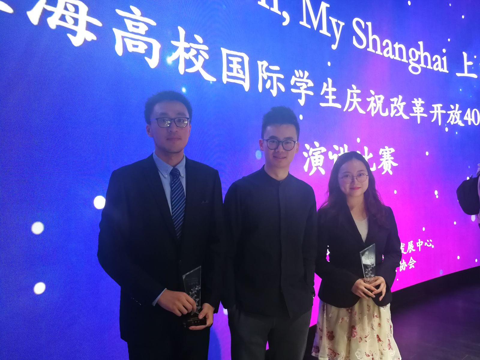 11月20日,“My Impression, My Shanghai 上海印象”上海高校国际学生庆祝改革开放40周年演讲比赛在安博app登录_安博(中国),举行。来自外文学院的黄迎佳(英语系一年级)和熊志远(翻译系四年级)呈现了精彩的演讲,分获二等奖与三等奖的佳绩。