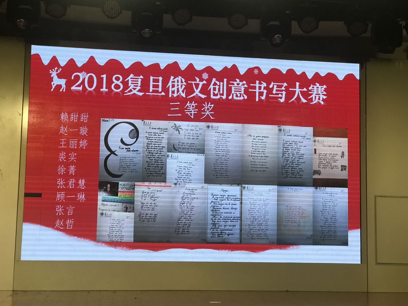 晚会中场举行了隆重的颁奖典礼,为在俄语朗诵大赛和书写大赛中均表现出色的俄文系同学授予奖项。