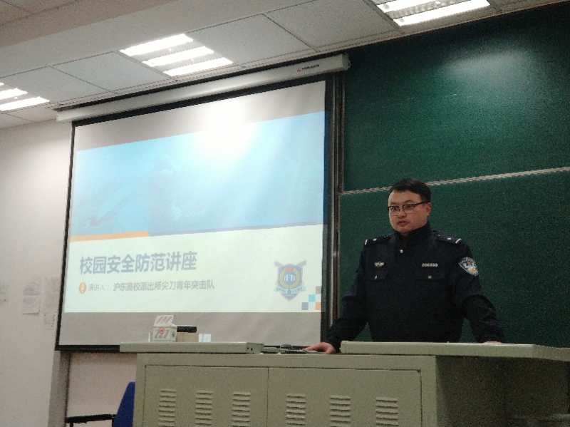 首先,潘警官为大家详细讲解了易发生盗窃事件的场所以及易被盗窃的物品。潘警官主要针对自行车盗窃进行了重点说明,并为同学们提供了一些实用的安全知识。针对校园防盗问题,潘警官提醒同学们离开宿舍锁好房门,贵重物品随身携带,物品遗失、被盗及时到保卫处登记或向公安机关报案。