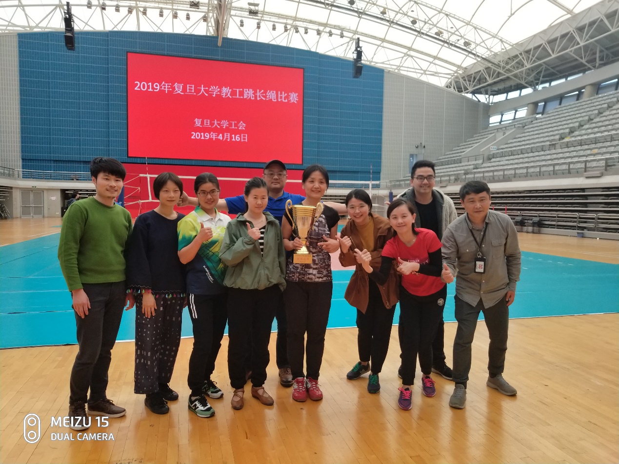 一年一度的复旦教工跳长绳比赛4月16日中午于正大体育馆再一次拉开帷幕,我院代表队以整齐的阵容亮相赛场。队员们精神抖擞,斗志昂扬,以饱满的热情奋力拼搏,圆满地完成了比赛任务,并最终突破去年记录,创下新的战绩。