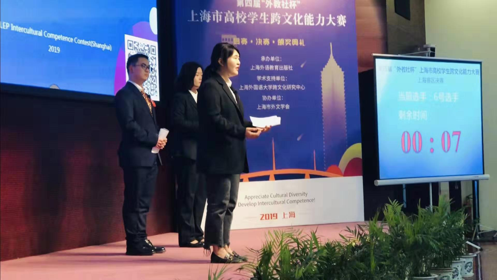 三位同学经过两轮激烈角逐,通过跨文化案例分析、现场问答、跨文化理论和知识问答、讲述中国故事等多个环节的比拼,凭借在国际视野、跨文化理论、思辨能力、英语语言应用能力、沟通技巧和团队合作等多方面的出色表现,最终获得一等奖,再次为我校争得荣誉,并将与上海外国语大学和同济大学共同代表上海高校参加12月份的长三角高校学生跨文化能力大赛。