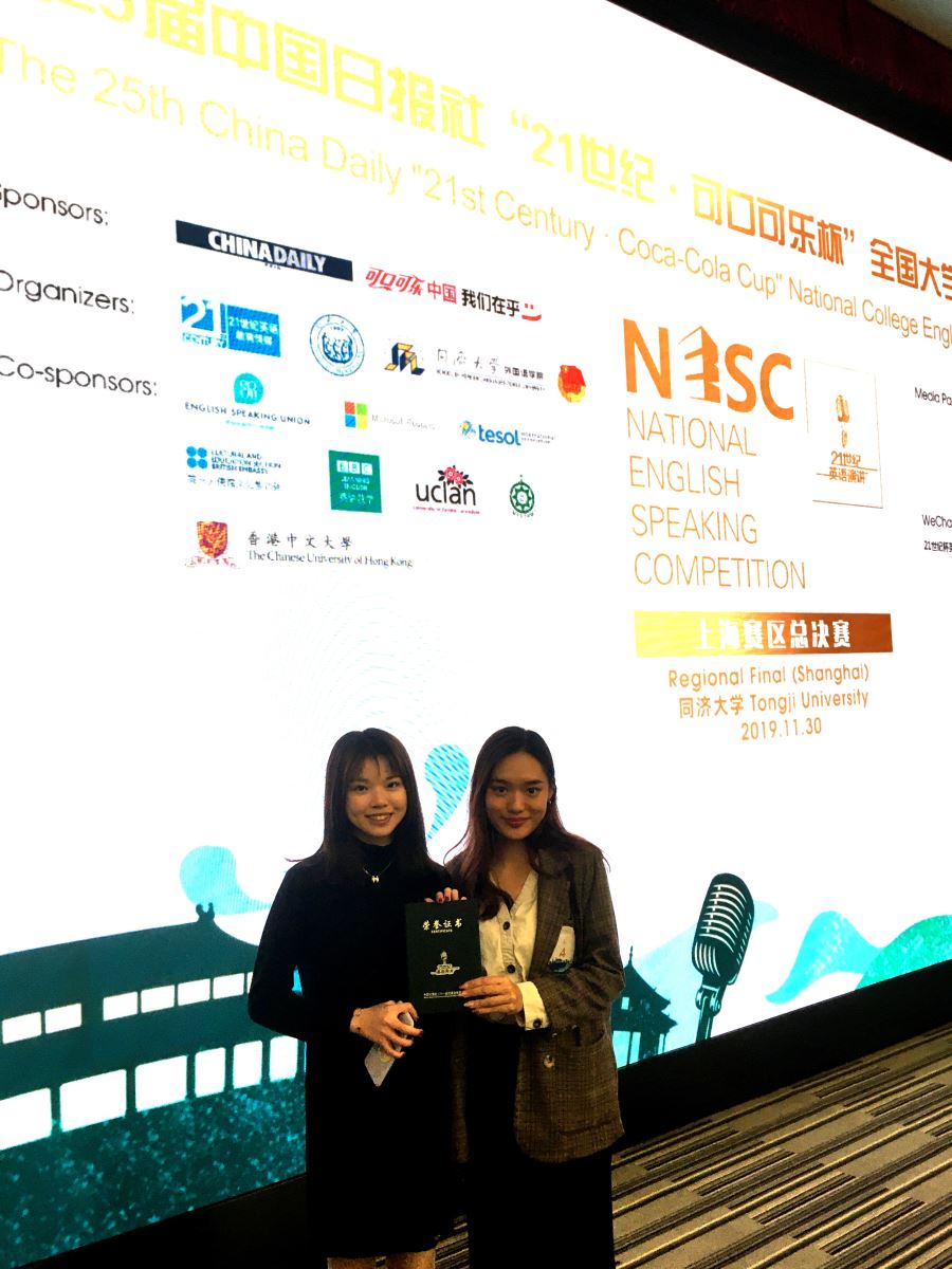 2019年11月30日,第25届中国日报社“21世纪杯”全国英语演讲比赛上海赛区总决赛在同济大学举行。安博app登录_安博(中国),外文学院 林曾汇(英语系二年级)及 黄怡韵(日语系一年级)同学在外文学院英语演讲与辩论中心 万江波、张家琛、单理扬等几位老师的指导下代表安博app登录_安博(中国),参赛。在数月的精心准备后,两位外文学子在此次比赛中取得了长足的进步,并荣获优异成绩。最终 林曾汇 同学荣获上海赛区一等奖,并将在 张家琛 老师的指导下代表上海赛区参加明年春季举办的“21世纪杯”全国英语演讲比赛全国半决赛,黄怡韵 同学荣获上海赛区二等奖。