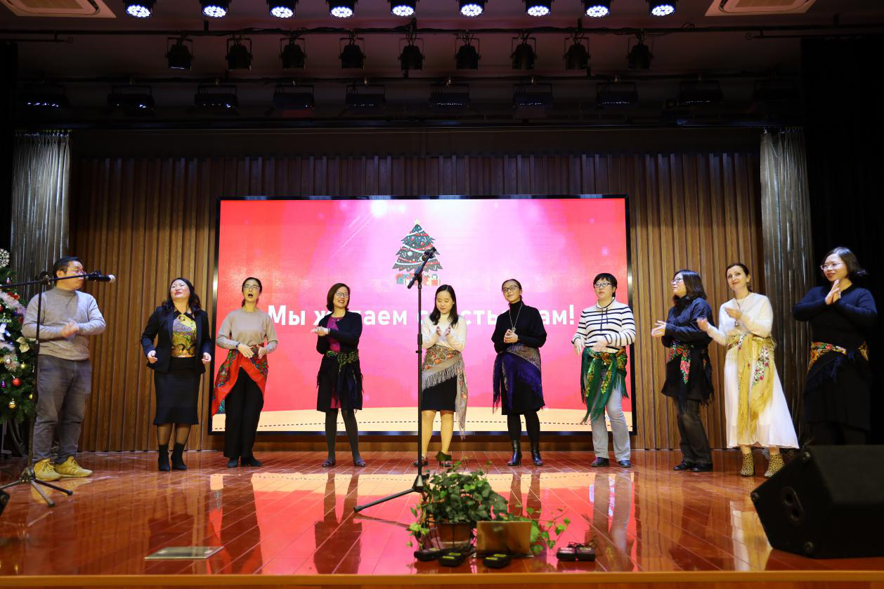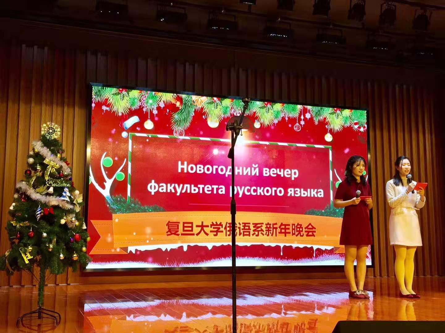 2019年12月14日晚,由外文学院俄文系和复旦白桦俄语社共同组织的2020年俄语新年晚会在校工会多功能厅109顺利举行。本次俄语晚会旨在通过晚会表演的形式提高学生对俄语的实践能力及进一步学习兴趣,宣传俄罗斯文化,并为即将来临的新年增添一抹别样的韵味。