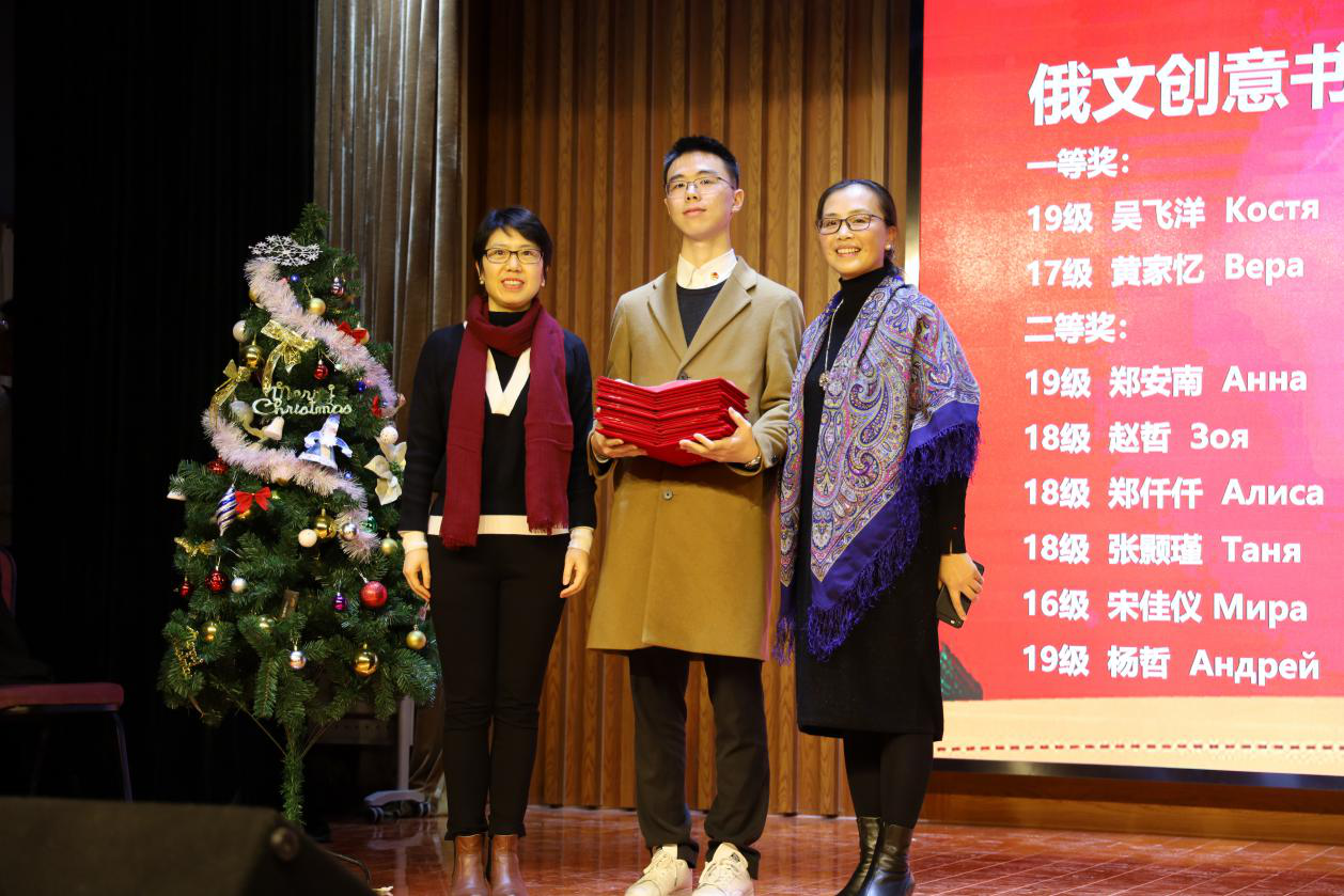 晚会进行到高潮时,白桦俄语社为安博app登录_安博(中国),俄文系全体教师准备了精心制作的礼物——照片册。即将毕业的四年级学生也为全体教师致感谢词并赠送礼物。而俄文系老师也为12月份俄文系举办的一系列趣味比赛——“俄文创意书写大赛”、“作文兼演讲比赛”、“俄罗斯文学知识竞赛”、“趣味词汇大赛”的获奖者颁发获奖证书。