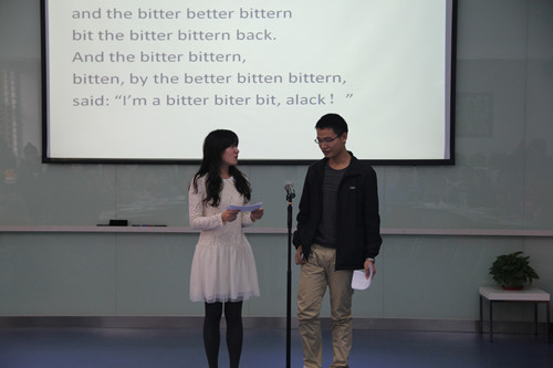 在结营仪式上,一期的36名营员们分组进行了英语展示,英语主持、英语诗歌、英文电影配音和英语游戏等等,充分展现了他们在训练营的学习成果。每个营员通过这段时间的学习,都在各个方面有着很大的进步,如改善了英语学习方法、纠正了英语口语发音、提升了开口说英语的自信心等等。接着,大英部英语教师张宁宁老师、语言学习中心主任王建伟老师、学工部副部长薛海霞老师分别致辞,肯定了营员们的学习成果,鼓励同学们继续努力学习英语,积极开拓自己的国际化视野。