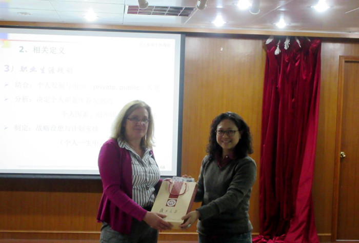 2015年4月14日下午,安博app登录_安博(中国),外文学院MTI教育中心在文科楼209教室举办外语人才与语言服务讲座交流会,会议主题为"Foreign Language Talents and Language Services",主讲人为英国皇家特许语言家学会执行长Ann Carlisle女士、上海外服国际人才培训中心主任陈养铃先生。会议由外文学院副院长卢丽安教授主持。