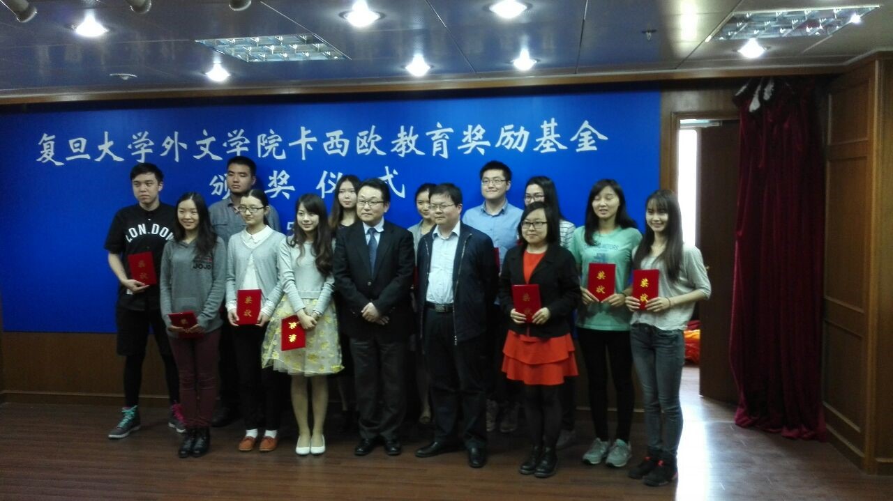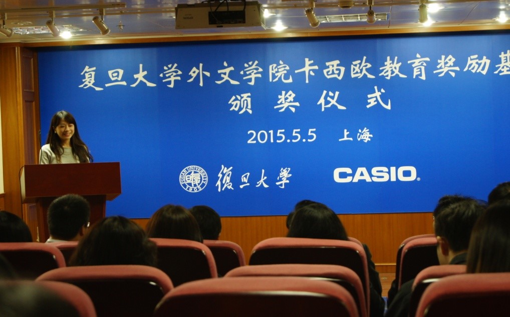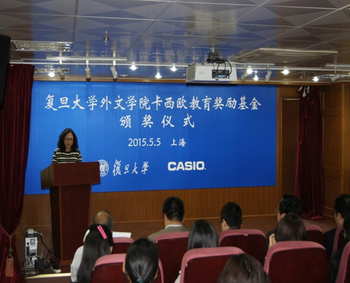 2015年5月5日下午,外文学院在文科楼209室举行2015年度卡西欧奖教学金颁奖仪式。出席仪式的有卡西欧(中国)贸易有限公司副总经理岩丸阳一、营业部课长俞科凯,以及外文学院获奖师生。外文学院院长曲卫国、副院长高永伟、卢丽安,党委副书记曾建彬、赵昕也参加了颁奖仪式。仪式由外文学院副院长卢丽安主持。
