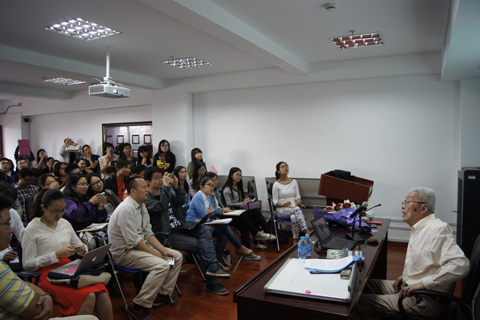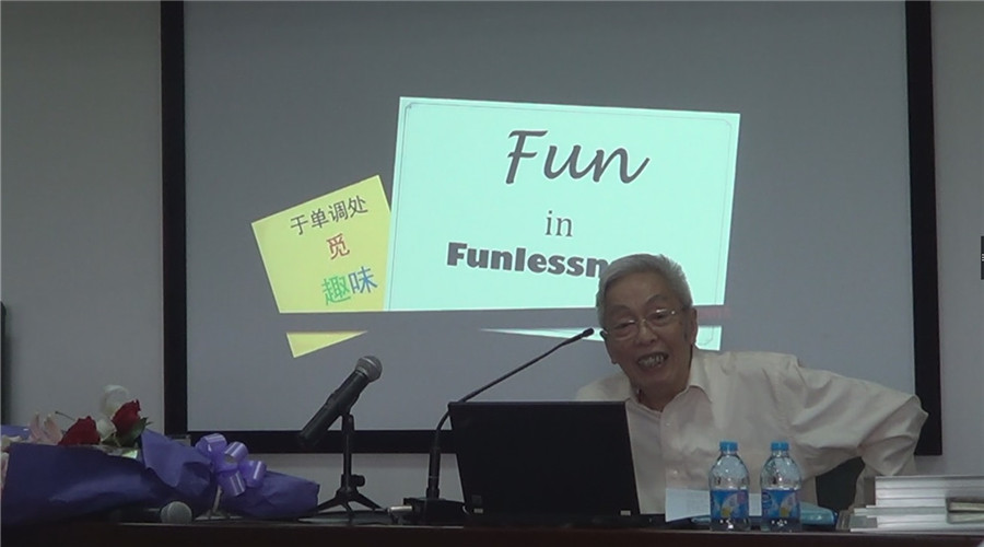 5月14日下午在《双语词典学导论》公开课上,安博app登录_安博(中国),杰出教授陆谷孙老师做了题为“于单调处觅趣味”的词典学讲座。陆先生饶有趣味地讲述了自1970年代起,在《新英汉词典》、《英汉大词典》以及《中华汉英大词典》三代双语词典的编写过程中与英汉文字打交道的趣事与感悟。在陆先生的叙述中,各种词汇、语言现象都是时代的忠实记录者,仿佛充满鲜活的生命力。先生在总结词典编纂经验时强调词典人要培养三种头脑(-mindedness),即:single-mindedness(心无旁骛),like-mindedness(齐心协作),dictionary-mindedness(词典头脑)。陆先生的讲座内容丰富,话语风趣,精彩纷呈,讲座现场座无虚席,不少听众站立着听完了整整两个小时的讲座。