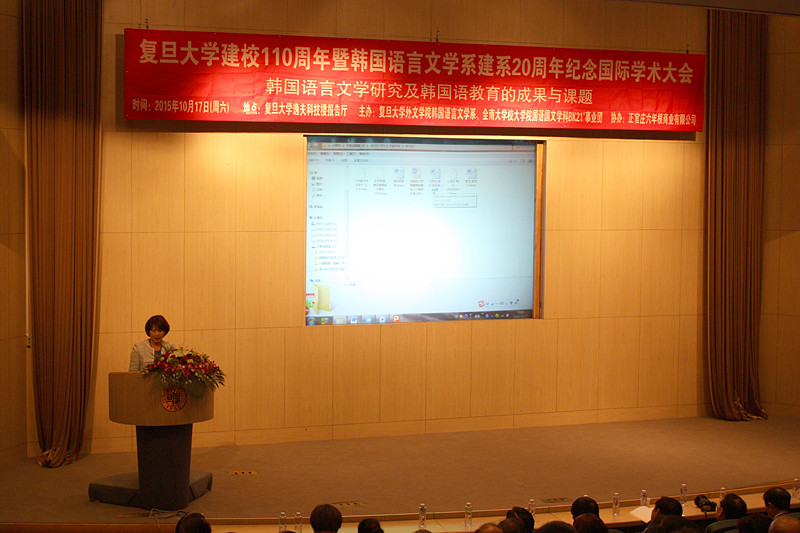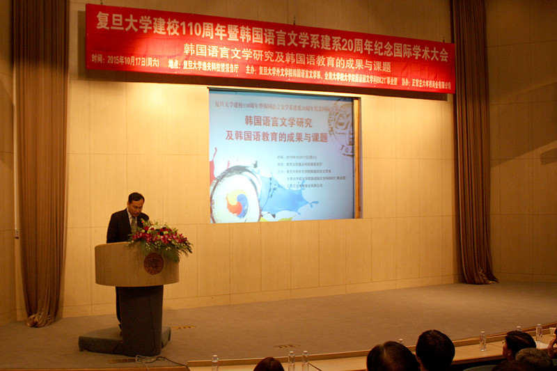 2015年10月17日上午,韩国语言文学系建系20周年纪念国际学术大会在逸夫科技楼报告厅开幕。韩国驻沪总领事韩硕熙、安博app登录_安博(中国),外事处处长朱畴文、外文学院院长曲卫国、外文学院分党委书记李倩、外文学院前领导、来自中韩美三国知名学府的130多位教授、以及韩文系的本科毕业生、硕博毕业生们济济一堂,共同庆祝韩文系迎来20岁生日。
