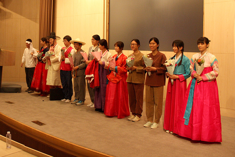 上午的系庆纪念及国际学术会议开幕仪式由曲卫国院长主持。外事处朱畴文处长首先向到场的国内外宾客致欢迎词。韩文系黄贤玉副教授以“韩文系的发展历程与未来”为题,回顾了韩文系建系至今的发展历史,并展望了未来面临的机遇与挑战。接着,韩硕熙总领事、北京大学朝文系主任王丹教授、韩国全南大学国文系申海镇教授分别致贺词。喝水不忘挖井人,韩文系退休教师姜银国、金钟太,外文学院前领导朱永生、赵振康、沈志宏、黄勇民、徐龙顺、褚孝泉,以及做出特殊贡献的海外人士洪允杓、尹汝卓、尹坪铉、朴珉雨,分别获得了外文学院授予的感谢牌。在集体合影留念后,由姜宝有教授主持主题讨论,首尔大学尹汝卓教授、梨花女子大学朴昌源教授、安博app登录_安博(中国),姜银国教授、延边大学金永寿教授参与了嘉宾讨论,分析了中国的韩国语教育发展历史与现状,指出了成绩与问题。最后,在座宾客一起欣赏了韩文系学生演出的话剧《鹤之声》,观看了韩文系毕业生发来的祝语视频。