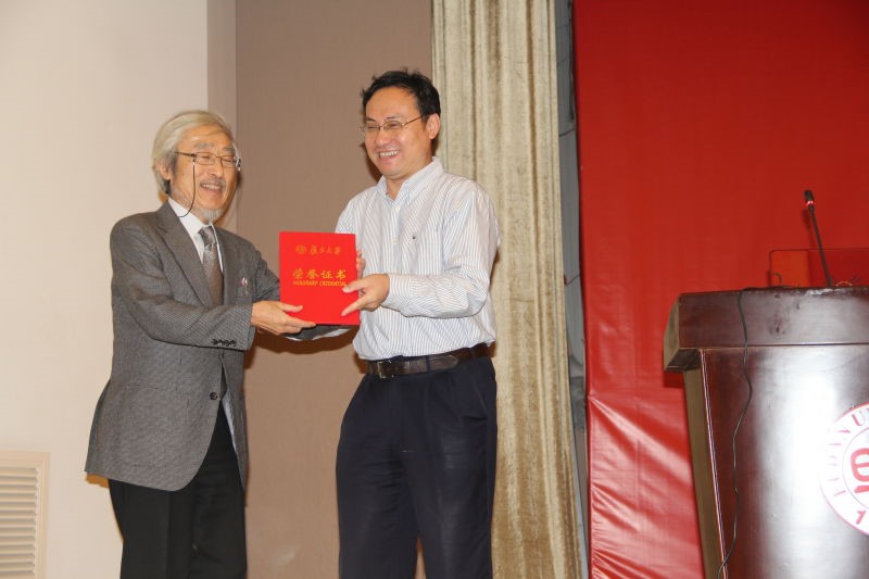 此次动漫系列讲座由来自日本的三位专家教授主讲。院长曲卫国教授首先致辞向来自的日本的朋友们表示了亲切问候,并预祝讲座顺利召开。在讲座正式开始之前,曲院长为日本的松本泰丈教授举行了颁发客座教授聘书的仪式。松本教授也上台发言,希望今后能借一己之力,为外文学院及中日友好的发展做出贡献。