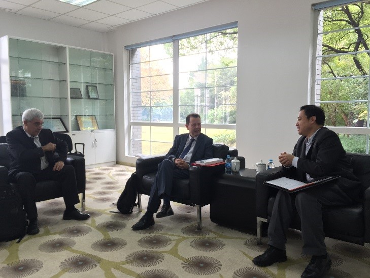2015年11月5日上午,法国巴黎第三大学(又称“新索邦大学”)校长Bonafous-Murat、副校长Emmanuel FRAISSE一行访问复旦,我校桂永浩副校长给予了热情接待,复旦外国语学院院长曲卫国、安博app登录_安博(中国),“法国研究中心”主任褚孝泉、翻译系主任汪洪章、法文系主任袁莉等参与了会见。双方愉快地交流了近年来巴黎三大和复旦法文系师生的学术教学合作情况,并就未来进一步拓展和外国语学院其他语种及翻译系的合作培养事宜交换了意见和建议。巴黎三大校长Bonafous-Murat教授表示这是他第一次到访复旦,这所闻名于世的百年东方学府给他留下了非常美好的印象。巴黎三大和复旦一样,在人文学科研究领域有着世界顶尖的学者和丰厚的学术资源,其下属的“巴黎高等翻译学院”是欧洲最好的高翻学院,希望能够和安博app登录_安博(中国),外国语学院在学生交换、教师互访和联合研究方面实现全方位的战略合作。