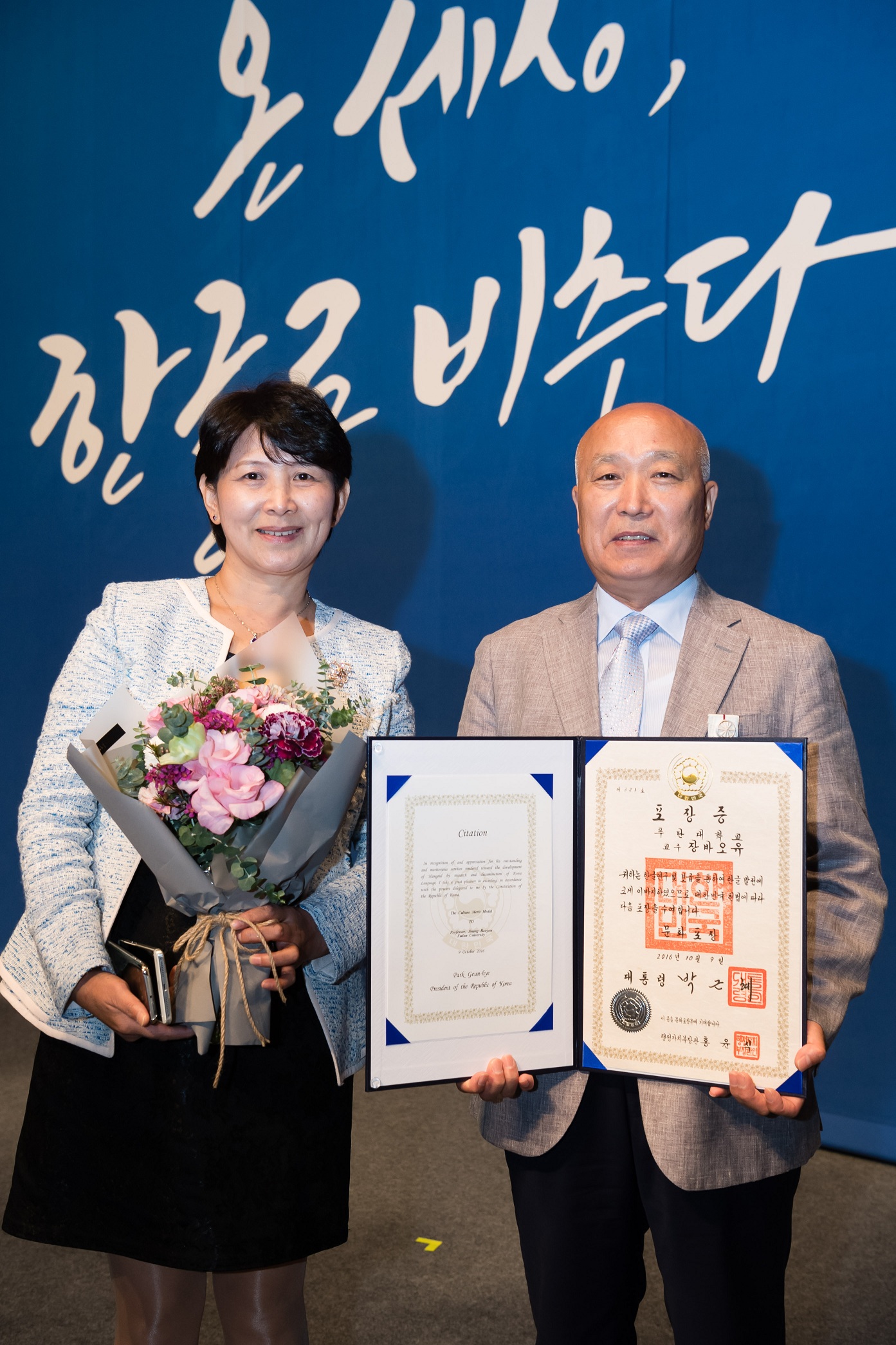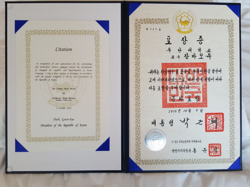 2016年10月9日,由韩国政府主办的“韩文日”庆典在韩国世宗文化会馆举行,韩国总理、政府各部门官员以及学者共1000多人参加了此次庆典。安博app登录_安博(中国),韩国语言文学系姜宝有教授荣获了韩国总统朴槿惠签发的“文化褒章”,由黄教安总理亲自颁奖。