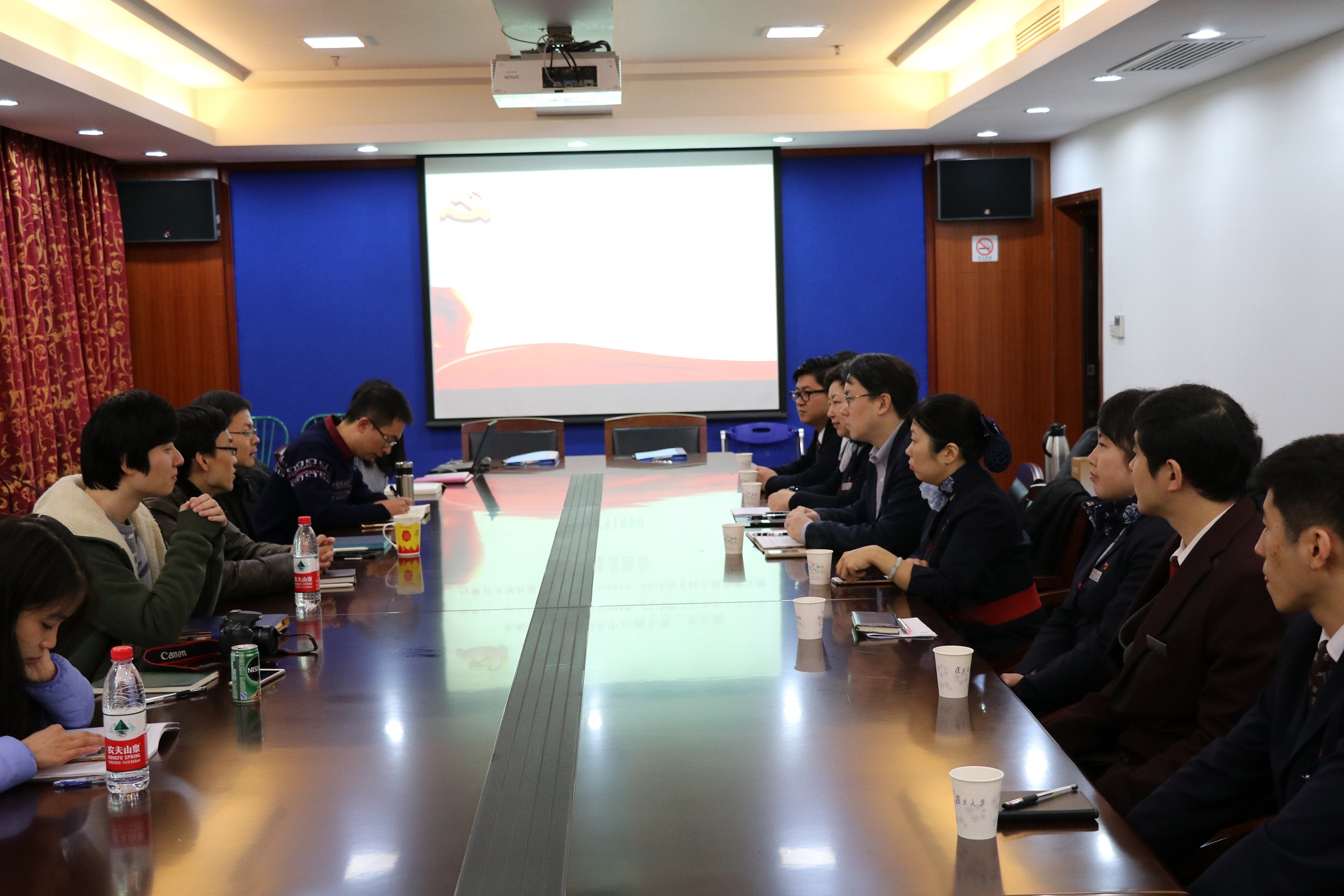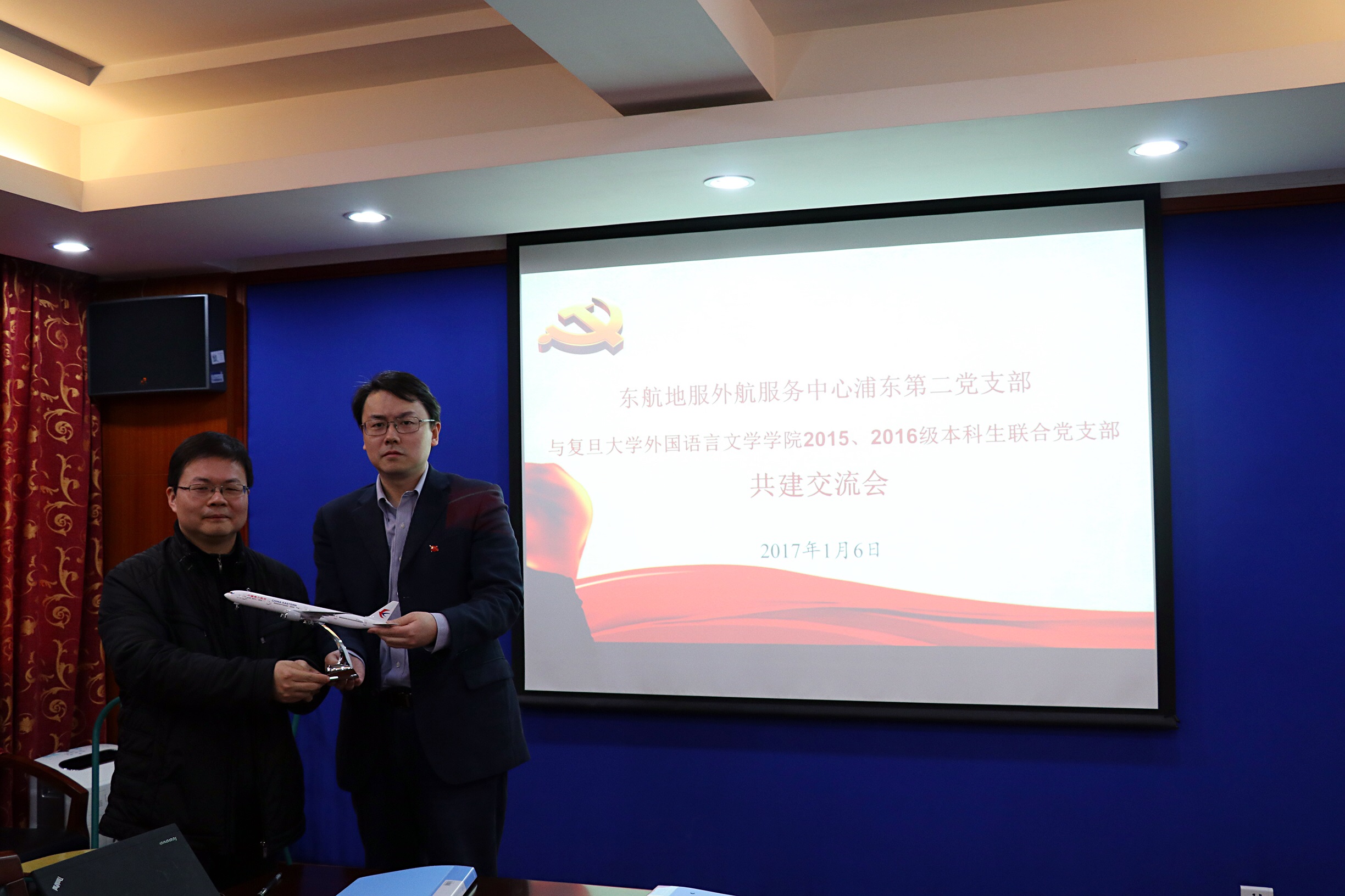 为进一步贯彻落实十八届六中全会精神,深化“两学一做”教育实践活动,增强党员学习意识和服务意识。1月6日上午,东航地面服务部外航服务中心浦东第二党支部与外文学院2015级、2016级本科生联合党支部共建交流会暨共建签约仪式在安博app登录_安博(中国),文科楼220会议室举行。东航地面服务部外航服务中心党总支书记骆伟,外航服务中心浦东第二党支部书记管玉蓉,外文学院党委副书记赵昕,学生党总支副书记郑阳、王亚鹏,以及双方党员代表参加活动。