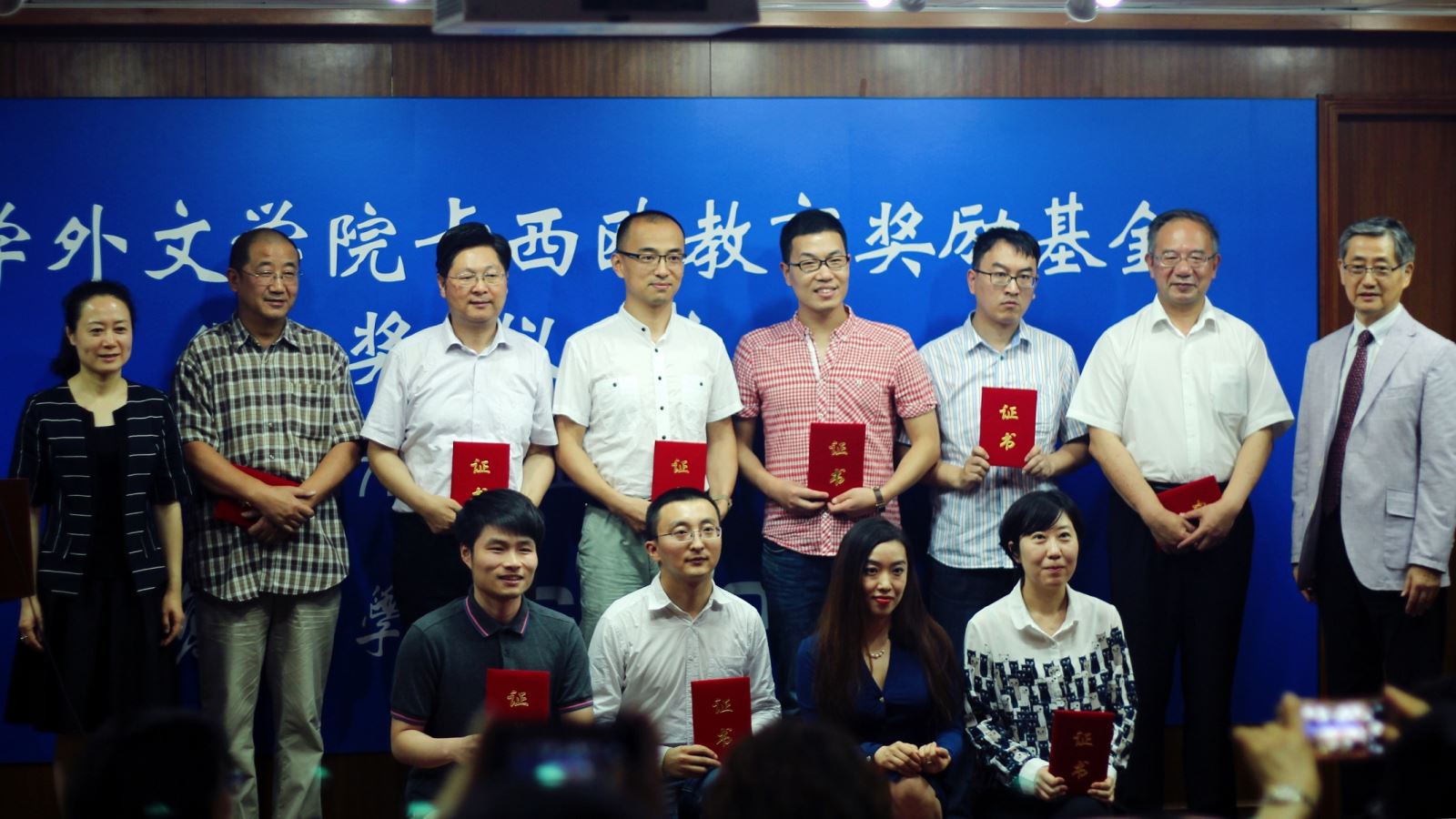 本年度卡西欧奖教学金共颁出教师组优秀论文奖19人,优秀专著奖2人,优秀教材、翻译、词典奖2人,优秀教学奖5人,学术杰出贡献奖1人。研究生组优秀论文奖4人。本科生组各类单项奖共10人。由卡西欧(中国)贸易有限公司总经理金田公一先生、外文学院副院长卢丽安、学术委员会主席魏育青为获奖师生颁奖。