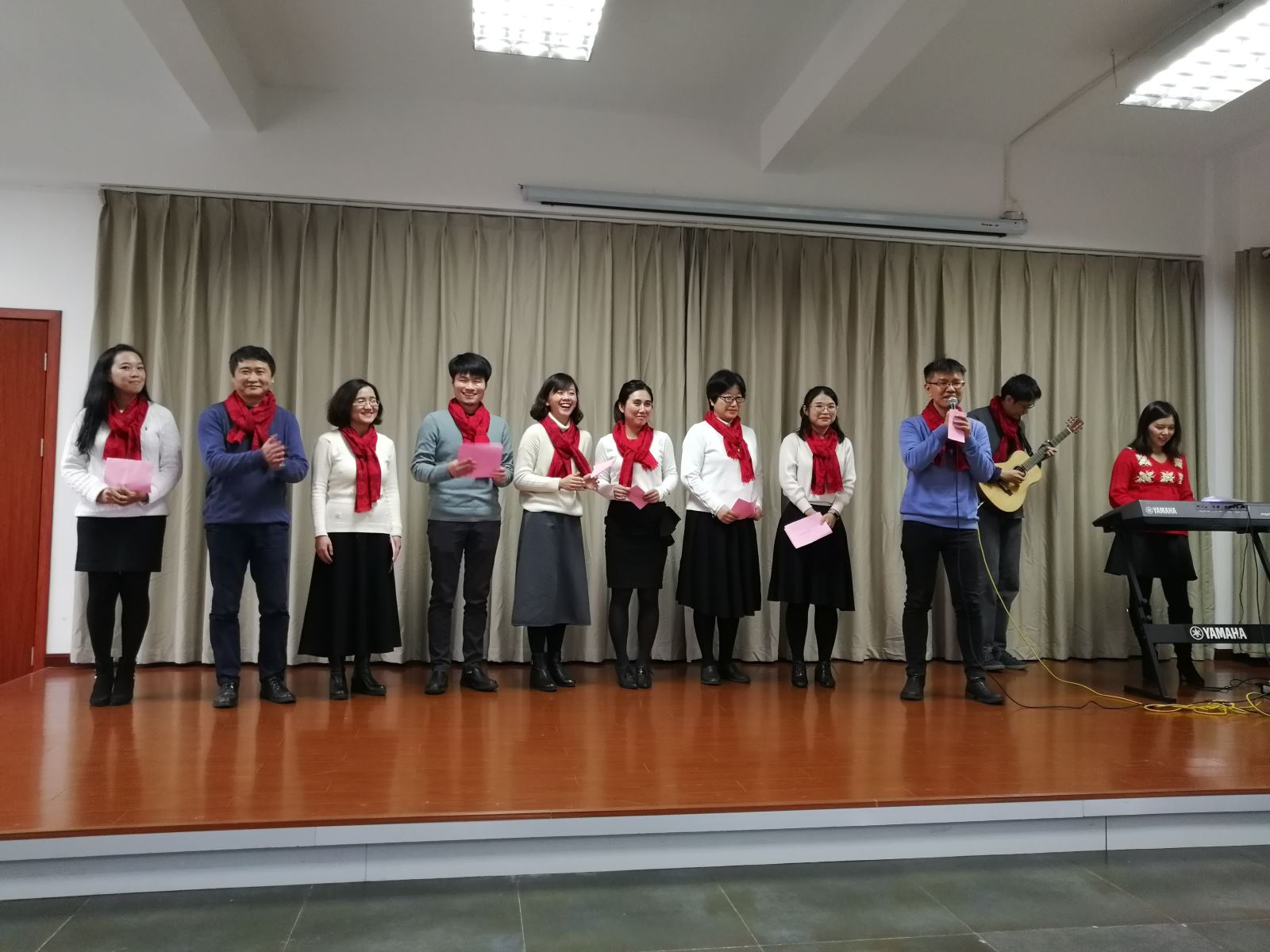 在联欢环节,大英部时丽娜老师为大家带来了精彩独唱《西班牙女郎》,多语种合唱队还献上了用九种语言演唱的歌曲《If You》,最后,学院党政领导也来到台上,与大家共唱《明天会更好》。让我们齐心协力,共同奋斗,学院的明天更美好!