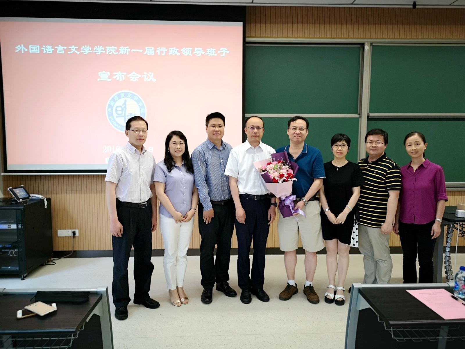 首先,陈莉副部长宣布了外文学院新一届行政领导班子任命通知,高永伟任院长,刘炜、郑咏滟、朱建新、范烨任副院长。