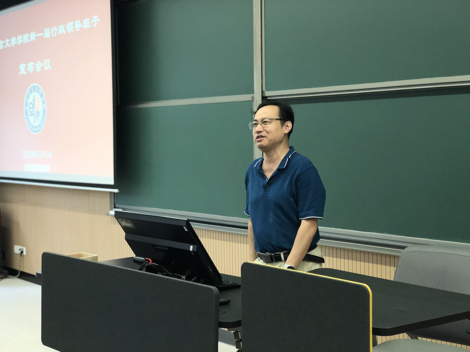 2019年7月4日下午,外文学院在第六教学楼6112教室召开全院教师大会,宣布新一届行政领导班子。学院党委书记罗英华主持会议,校党委常委、副校长陈志敏、校党委组织部副部长陈莉出席会议,学院全体教职员工参加会议。
