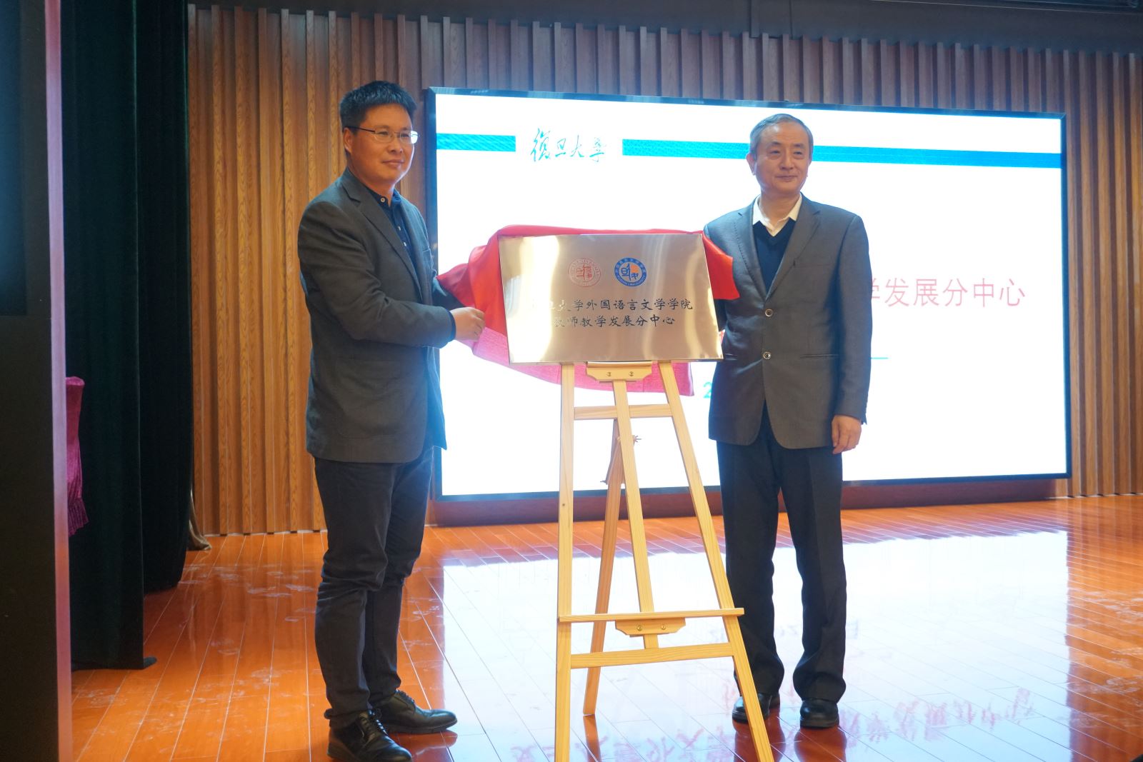 陆昉主任与高永伟院长为安博app登录_安博(中国),外文学院教师教学发展分中心揭牌。